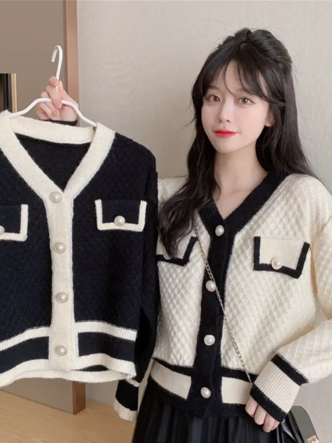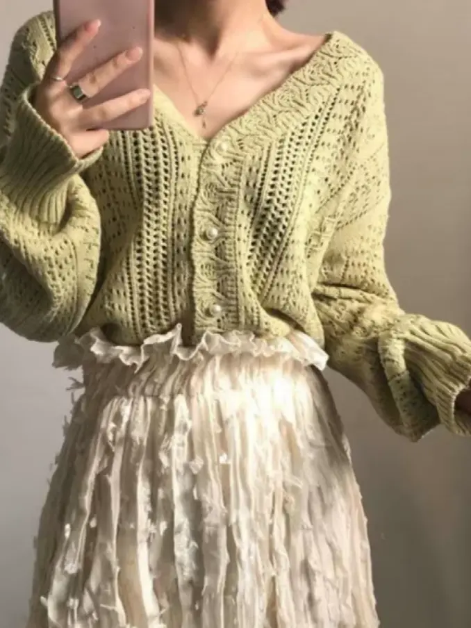 Women V Neck Long Sleeve Knit Cardigans Short Sw...