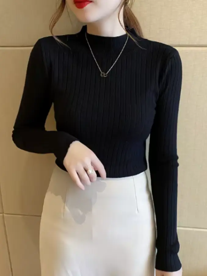 Women Knitwear Pullover Slim Stretch Knitted Swe...