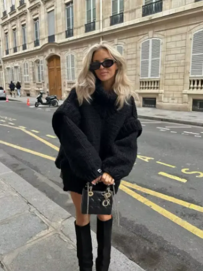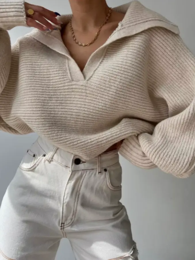 Women Loose Knitted Zipper Lantern Long Sleeve S...