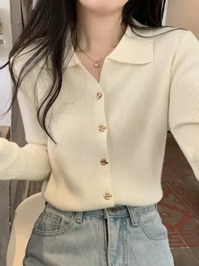 Women Slim Fit Knitted Long Sleeve Cardigan Swea...