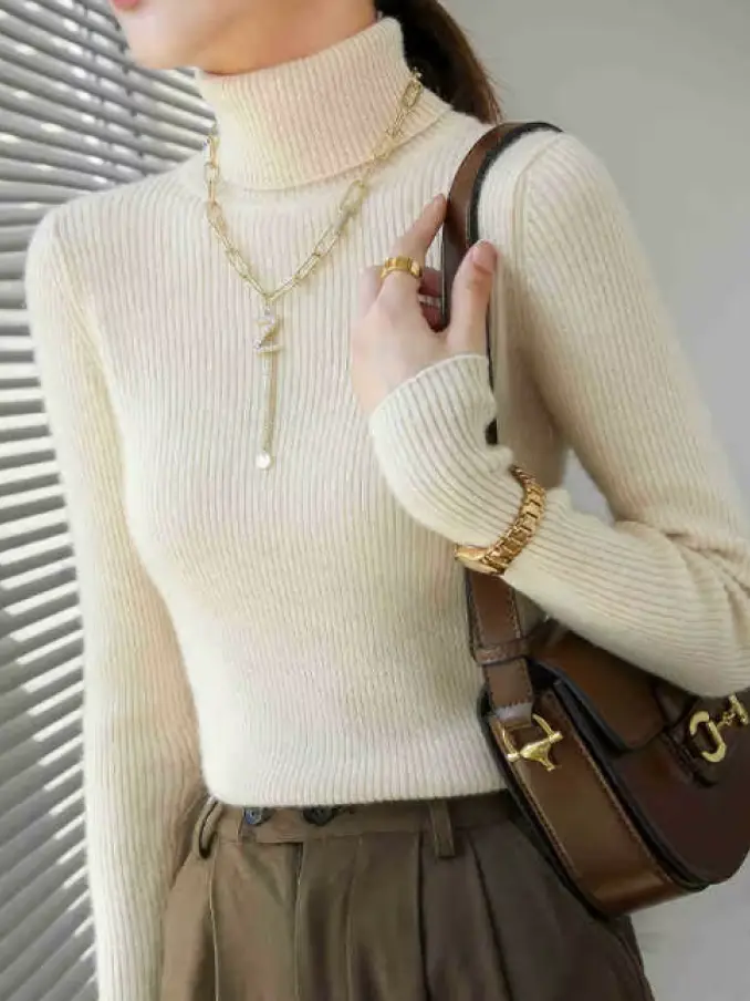 Women Knitted Pullover Turtleneck Sweater