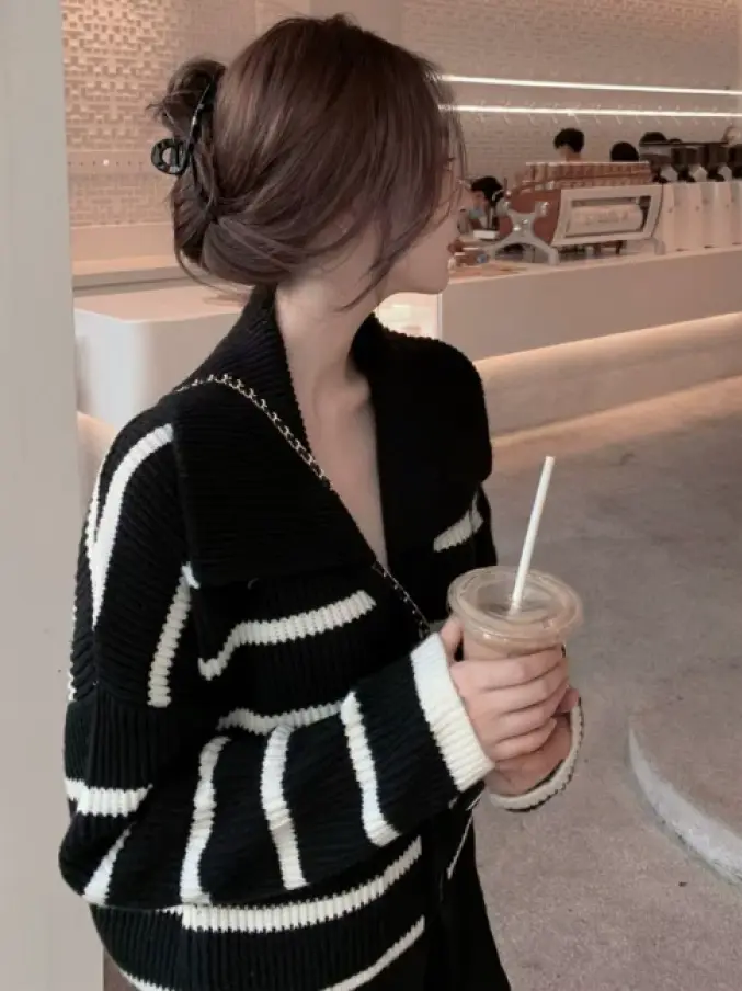 Women Striped Knitted Cardigan Sweater