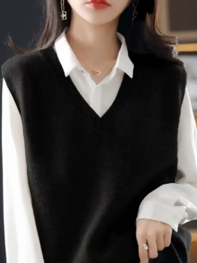 Women V Neck Vest Sleeveless Pullover Casual Kni...