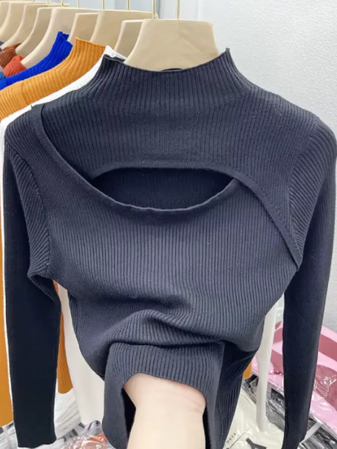 Women Sexy Hollow Out Slim Knitted Sweater