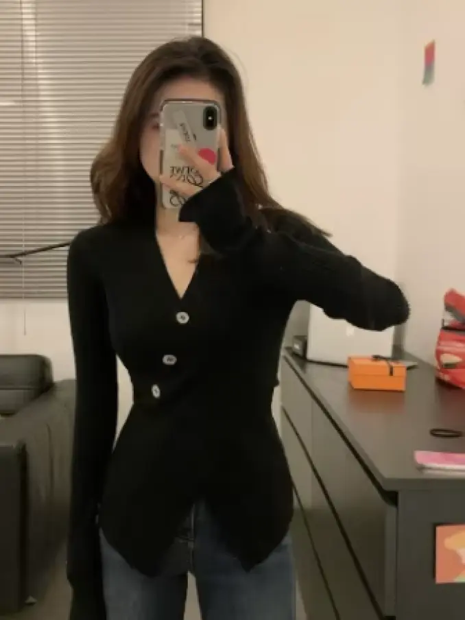 Women Clothing V Neck Loose Long Sleeve Sweater