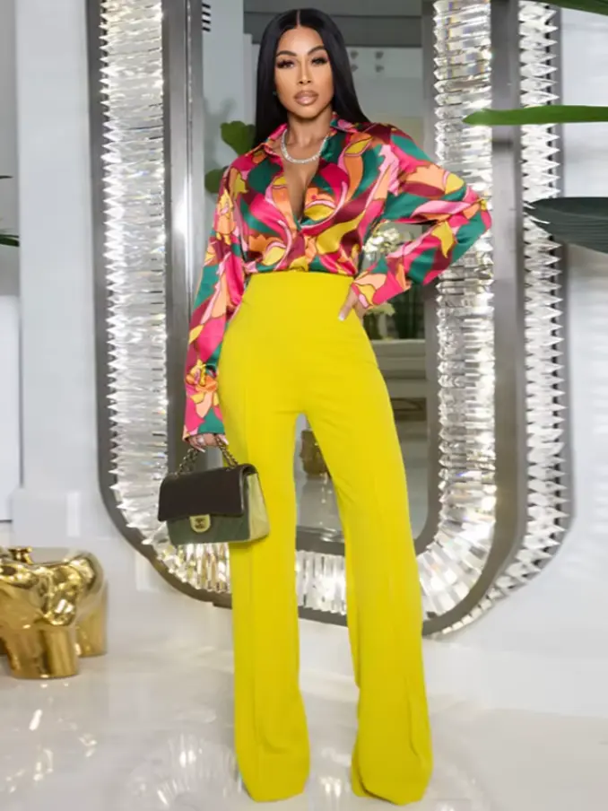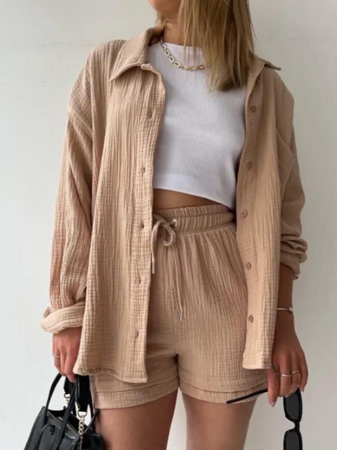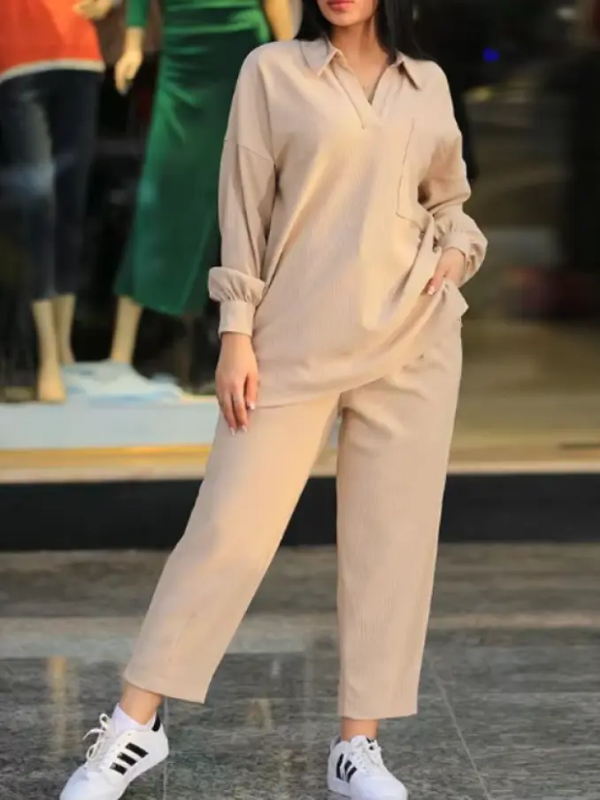 Women Casual 2 Piece Clothes Long Sleeve Shirt