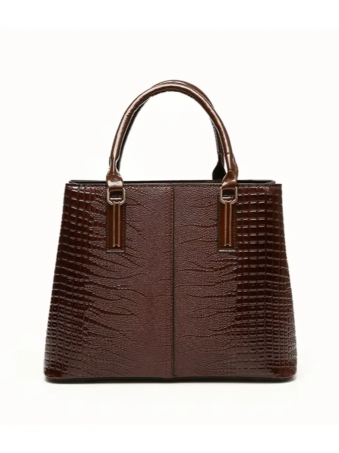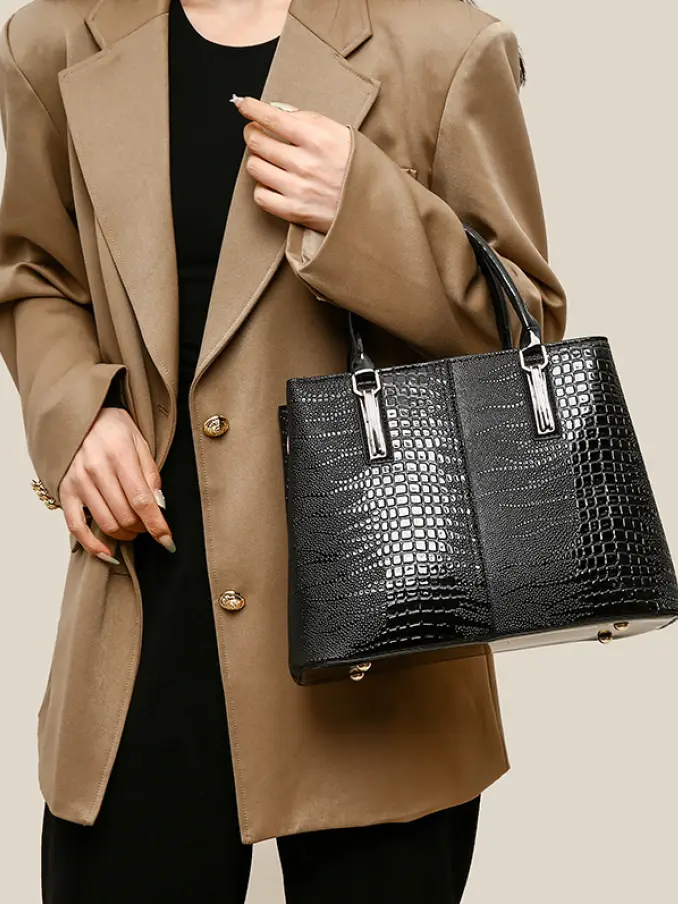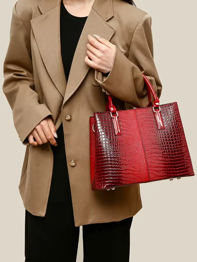 Luxury Women's Tote Bag Water Resistant Full Grain Leather Solid Color Lizard Vintage Shoulder Bag with Zipper Closure
