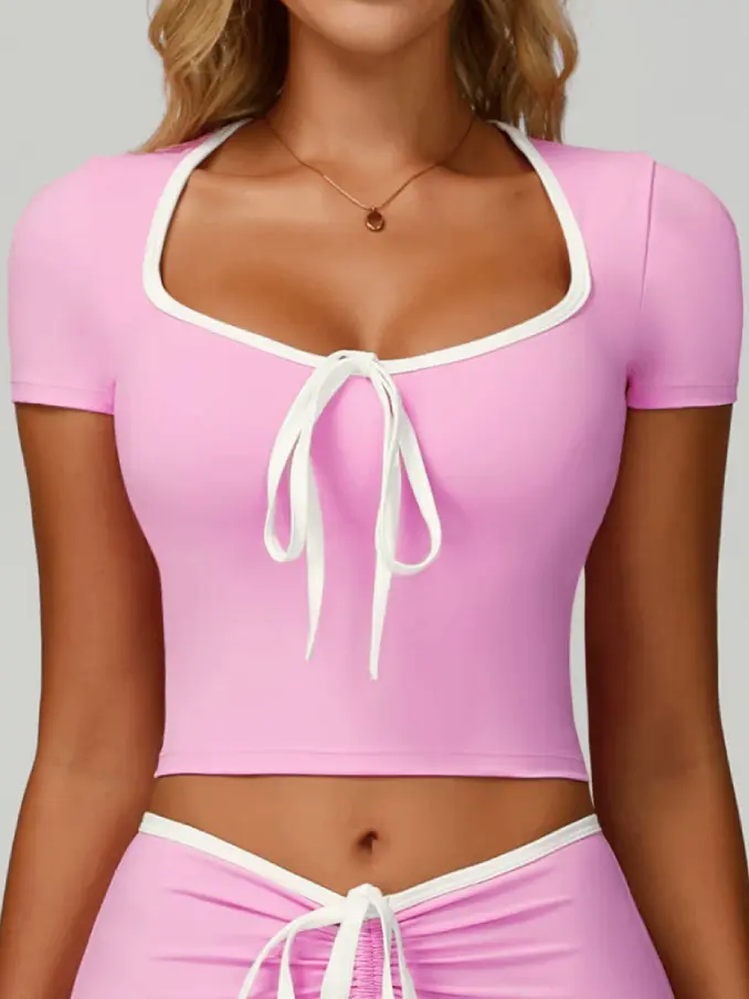 Short Sleeves Workout Sets for Women Bandage High Quality Athletic Suits Girls Fitness Clothing Women