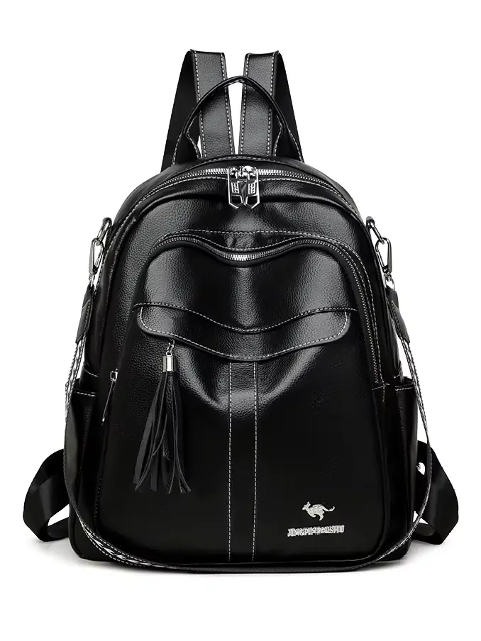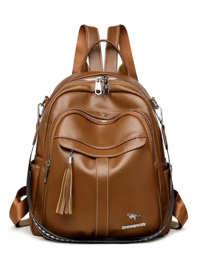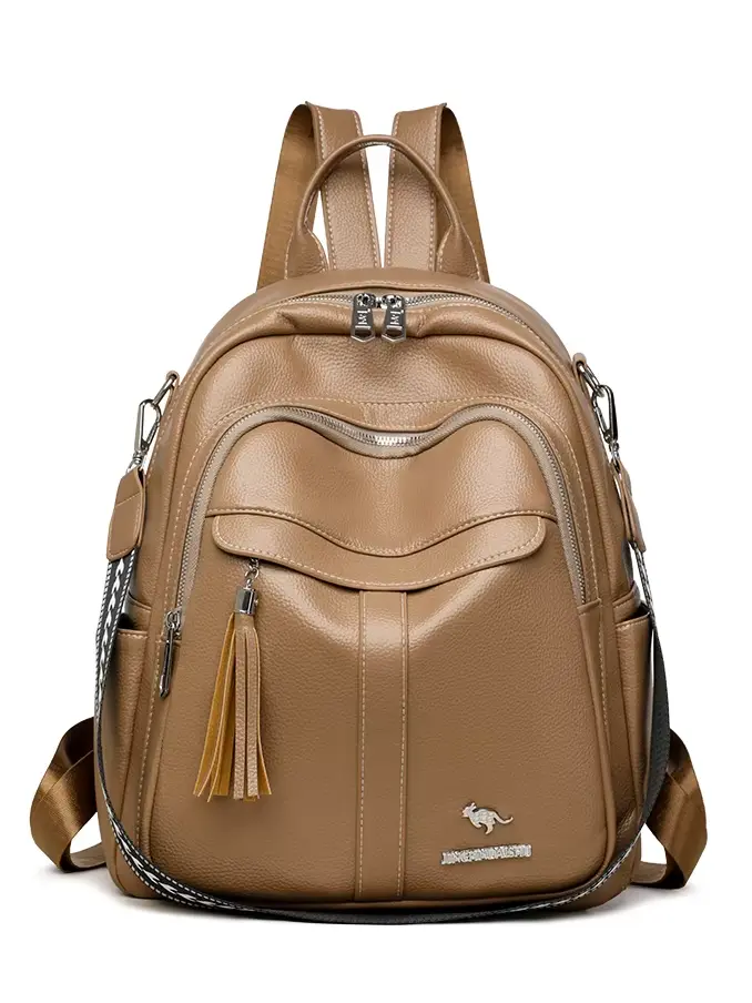 Women's PU Leather Backpack Purse with Tassel Fashion Shoulder Bag for Travel Zipper Closure