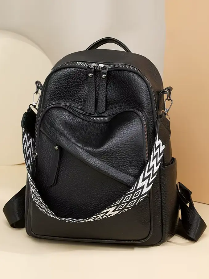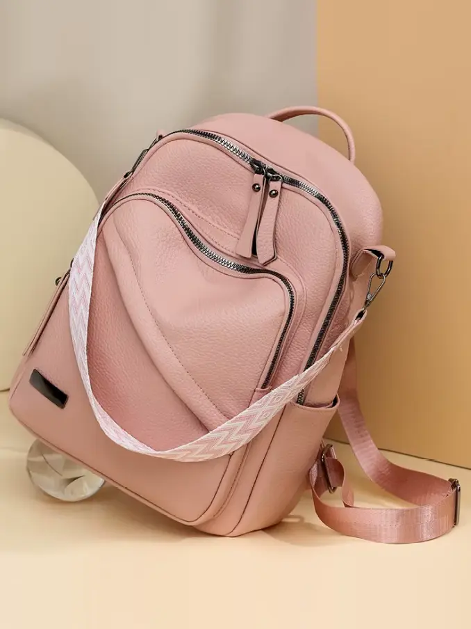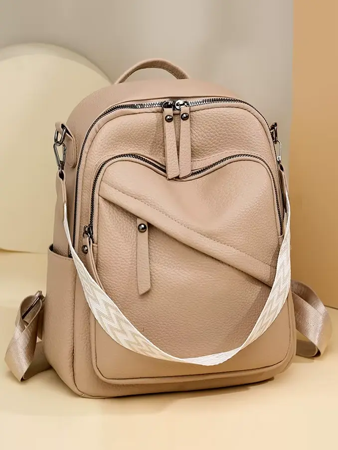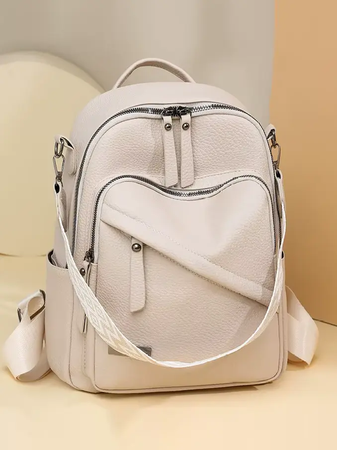 Pu Leather Women's Large Capacity Backpack Purses Vintage Business Bag for School Travel Zipper Ladies Bookbag