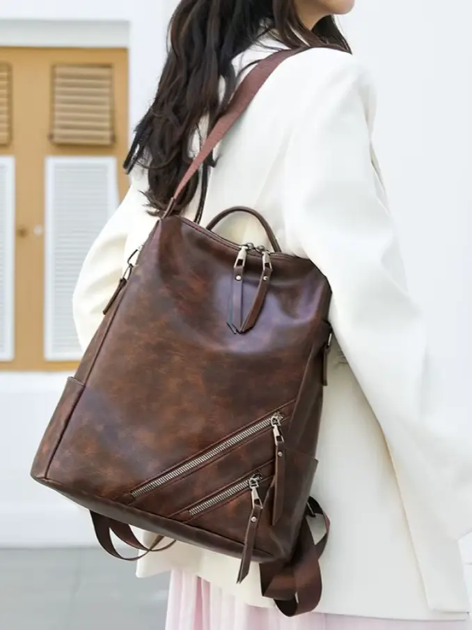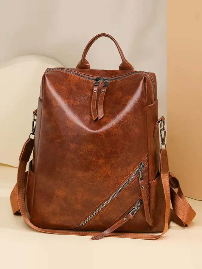 Ladies Waterproof Pu Leather Backpack Retro Casual Backpack