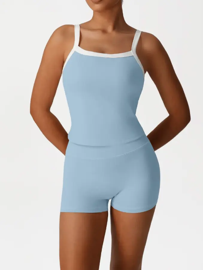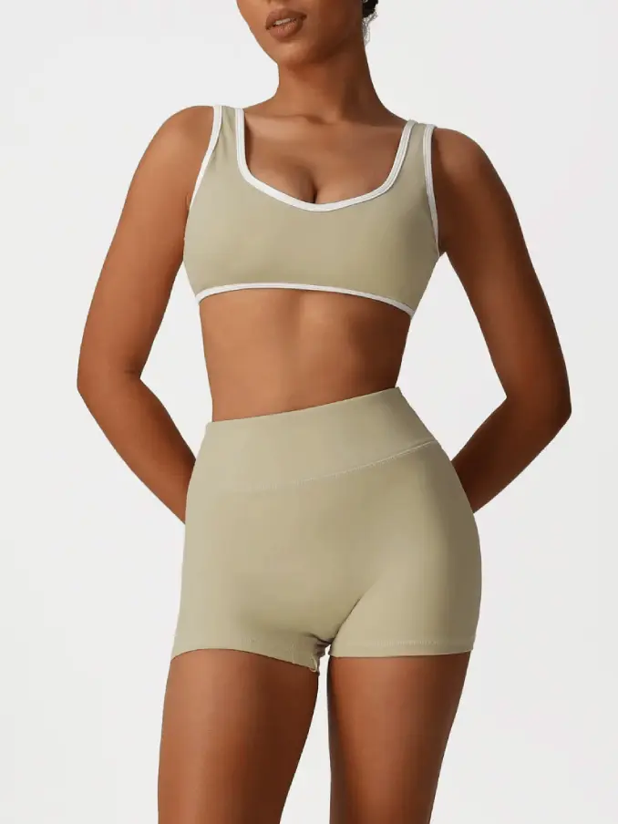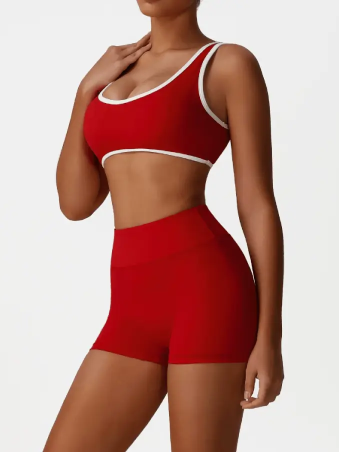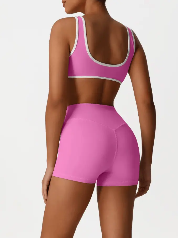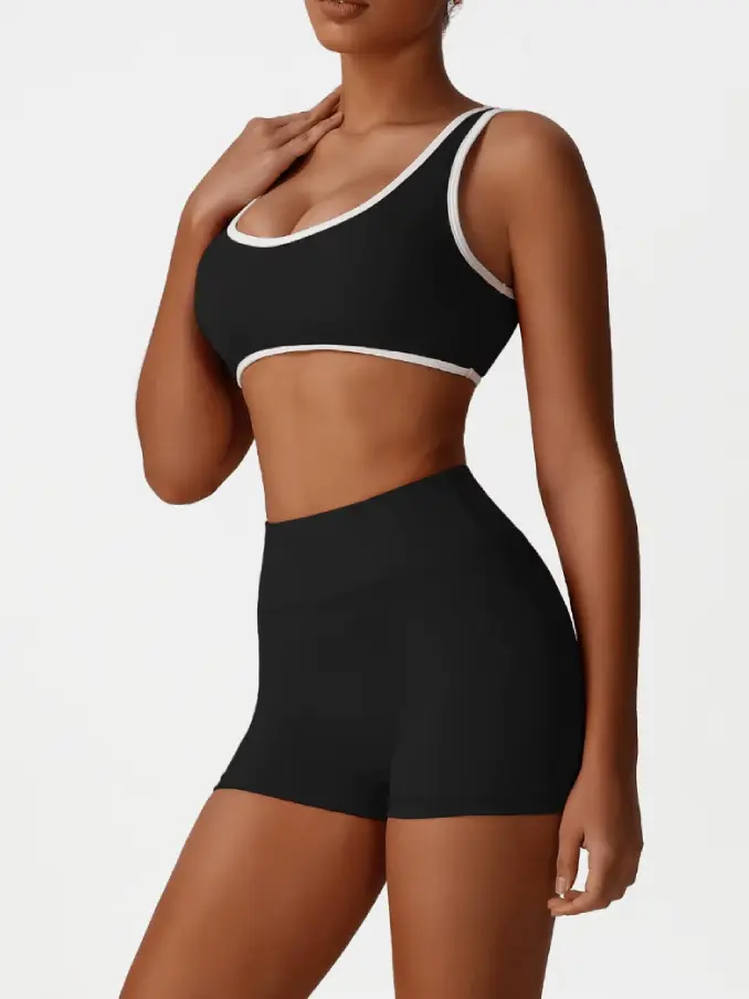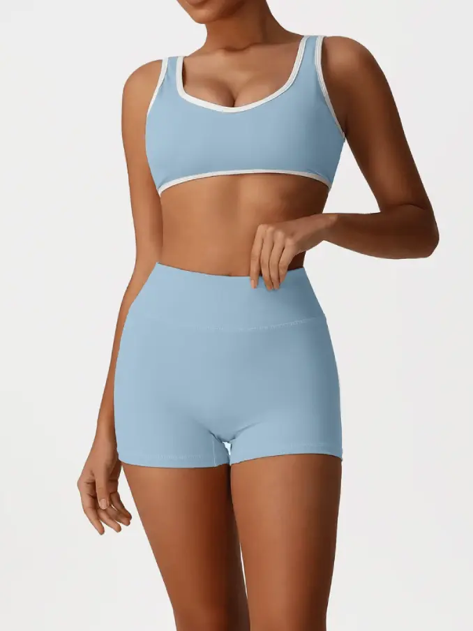High Stretchy Sport Workout 3 Piece Yoga Sets for Women Tummy-Control Color-Block Gym Sets Shorts and Sports Bra