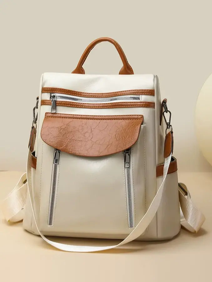 Women's Casual Style PU Leather Color Block Backpack Pu Leather Backpcak Shoulder Bag