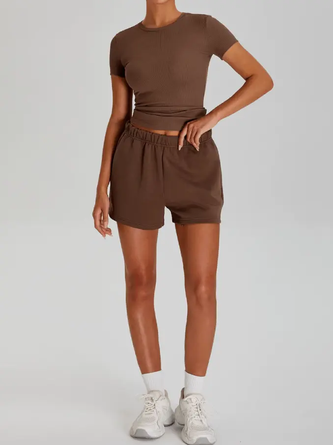 Wholesale Summer New Casual Loose Two-Piece Woman Sports Sets Quick-Dry Breathable Round Neck Women Running Workout Outfit