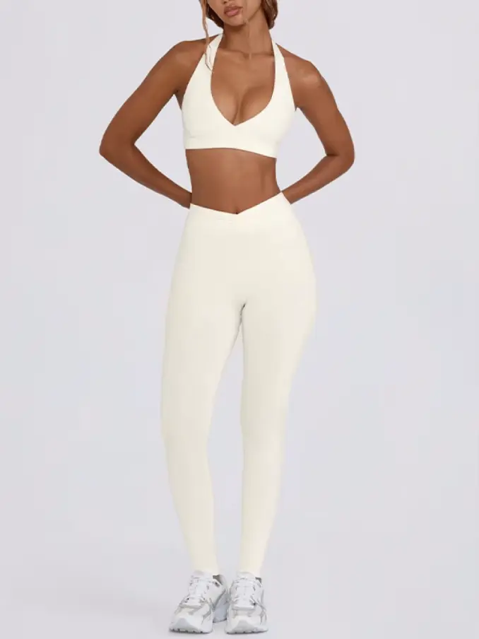 Halter Shockproof Bra Panties Yoga Sets Tummy Control Leggings Workout Sets 2pcs Womens Activewear Sets