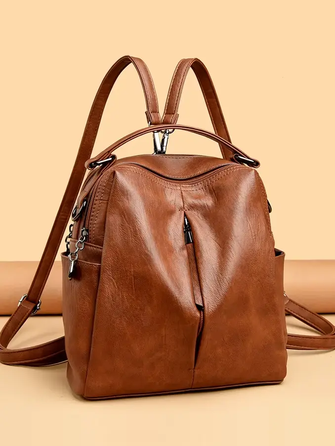 Pu Leather Handbag Backpack Three-layer Pocket for Lady
