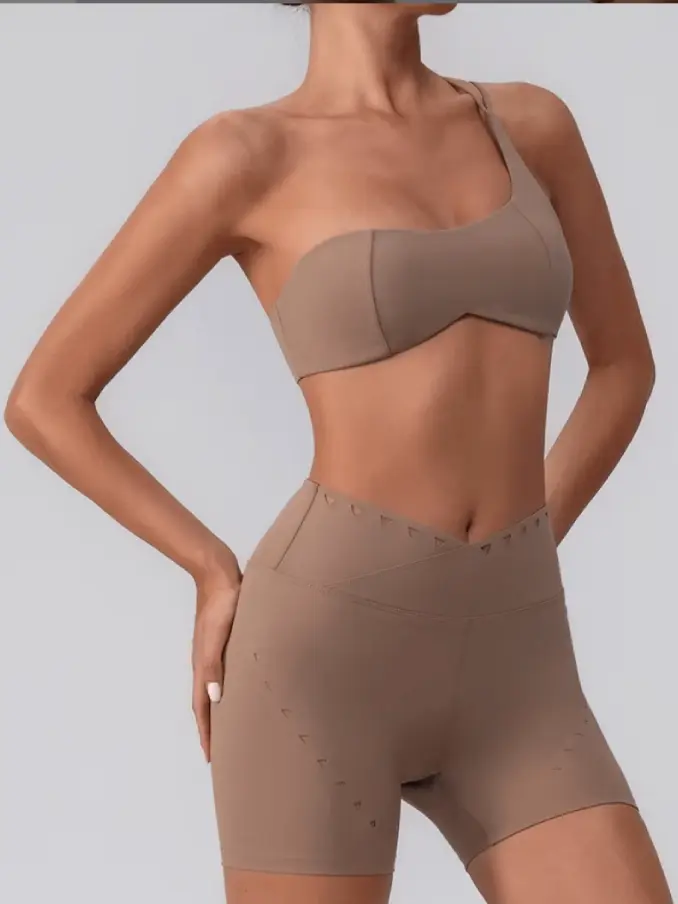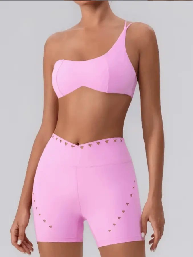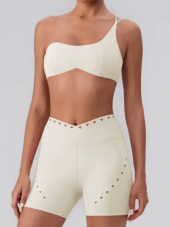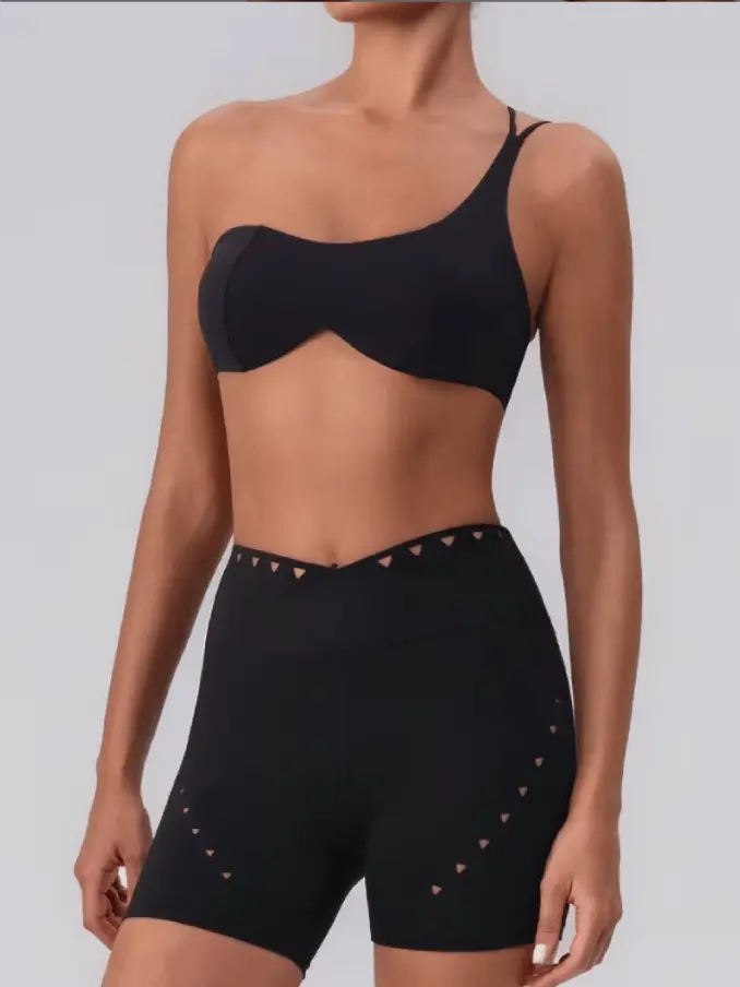 Fashion Oblique Shoulder Strap Chest Pad Push up Ladies Sports Set Sexy High Waist Hollow Short High Elastic Women Yoga Set