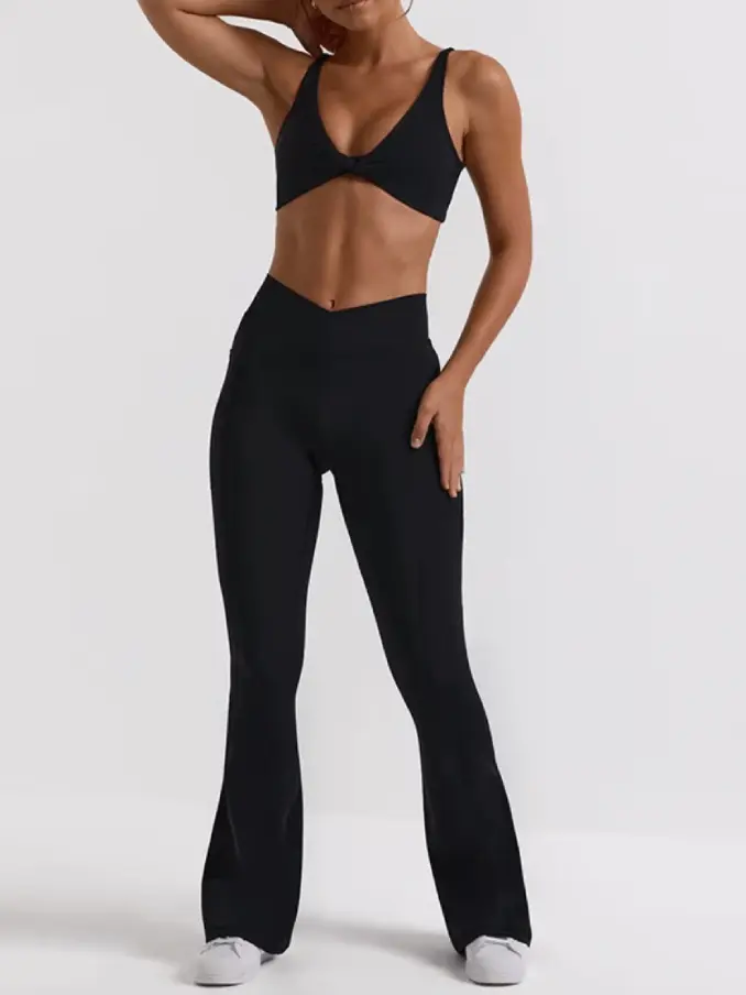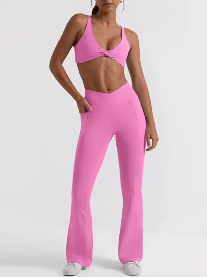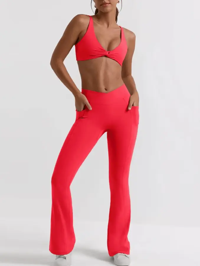 Adjustable Push up Girls Fitness Set with Chest Pads Sexy Vwaist with Pockets Butt Lift Women's Sports Set