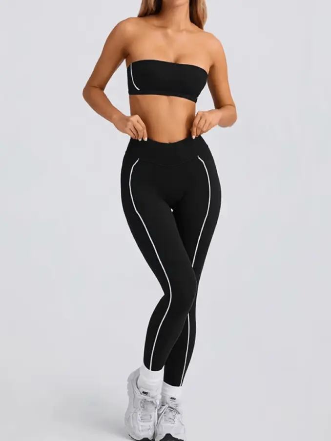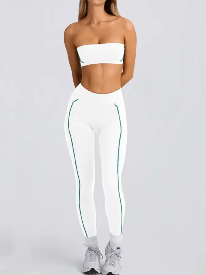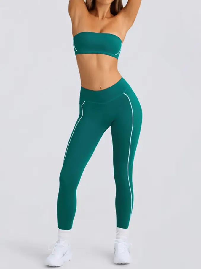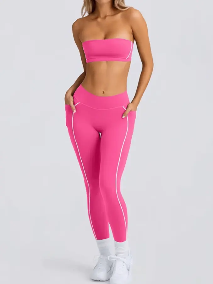 Sexy High Elastic Tube Top Women's Sports Set Fashionable High Waist with Pocket Long Yoga Suit for Women