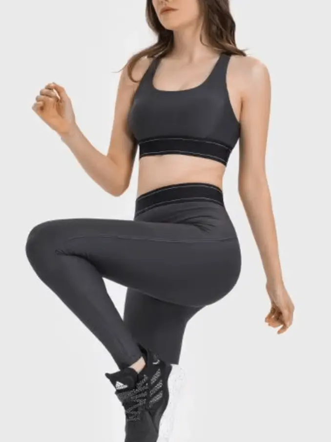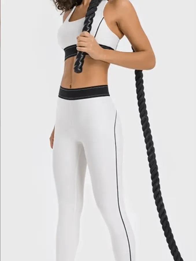 Adjustable Chest Pad High Support Bra Women Yoga Set Long Elastic High Waist Tummy Control Butt Lift Girls Sports Set