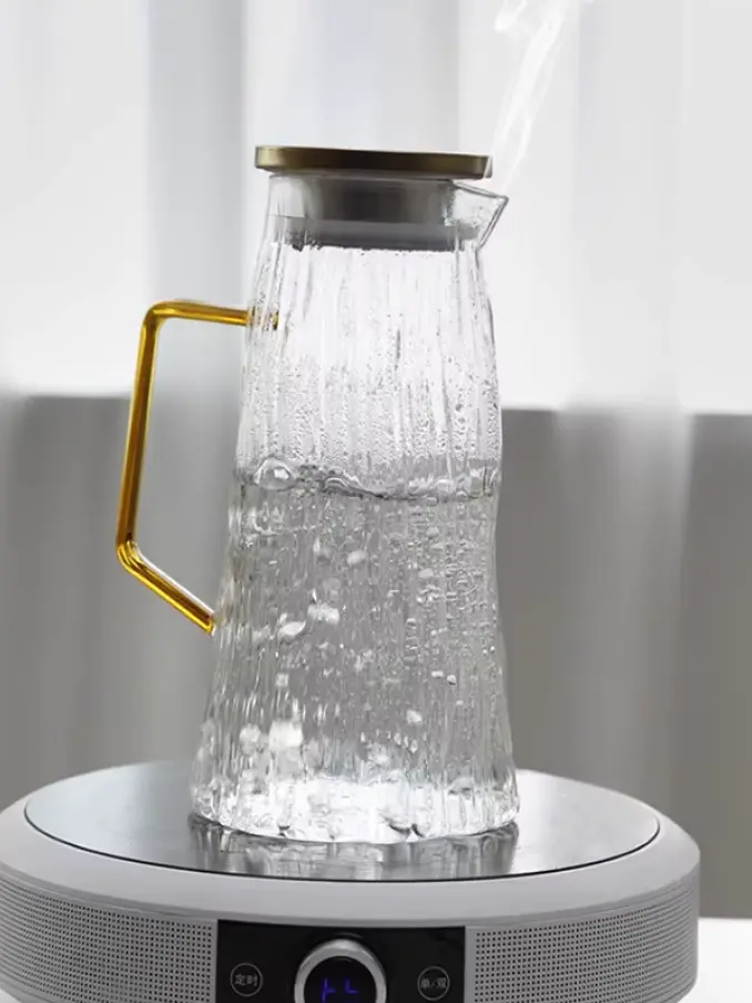 Modern Design Large-Capacity Borosilicate Glass Tea Kettle 1.8L Summer Juice Fruit Teapot Glacier Lid Bark Texture for Household