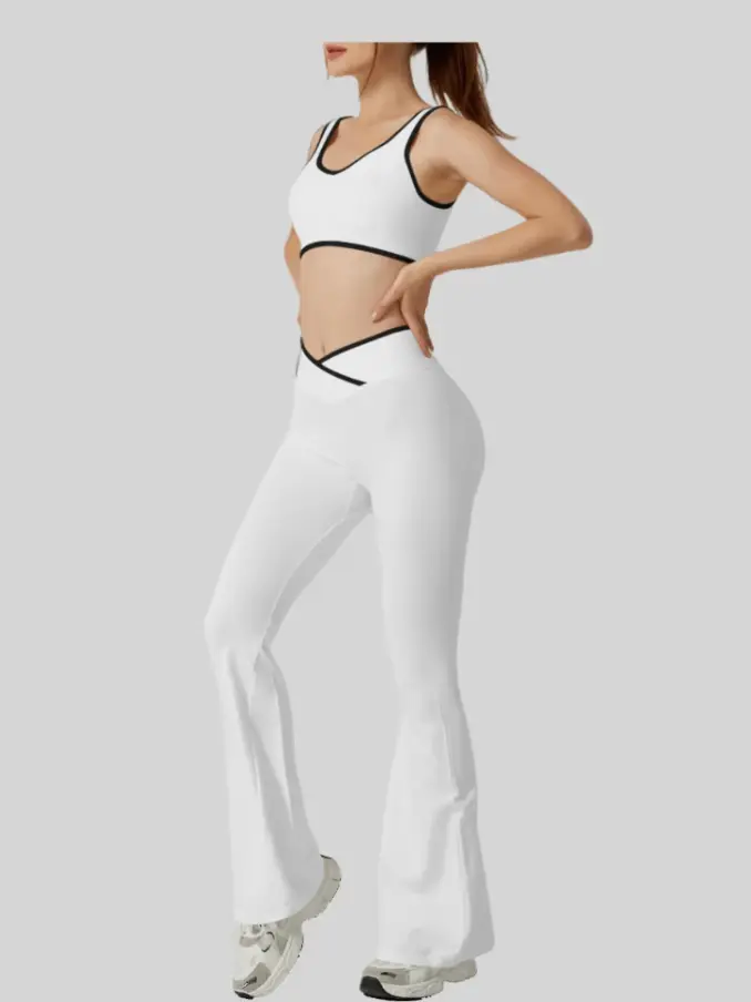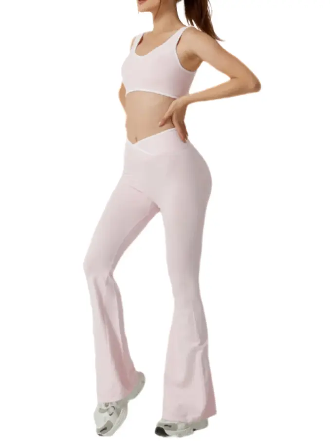 V-neck Short Navel-baring U-Shape Beautiful Back Women's Fitness Suit Cross High Waist Flare Leggings Women's Sports Suit
