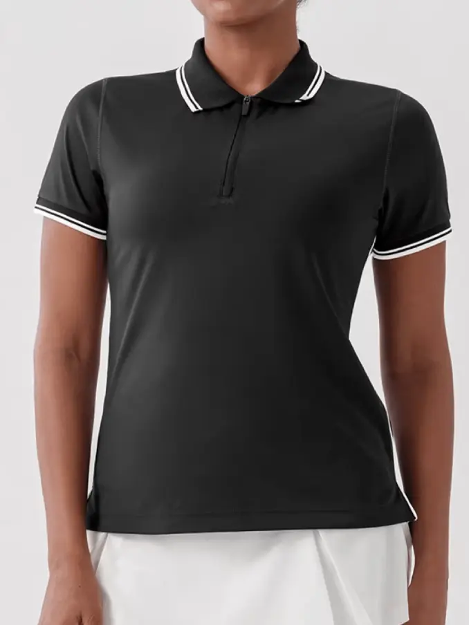 Summer Ladies Stand Collar Half Zip Short Sleeve Polo Shirt Tennis Set 2in1 Anti-exposure High Quality Short Skirt Golf Suit