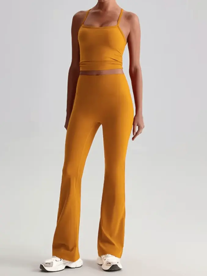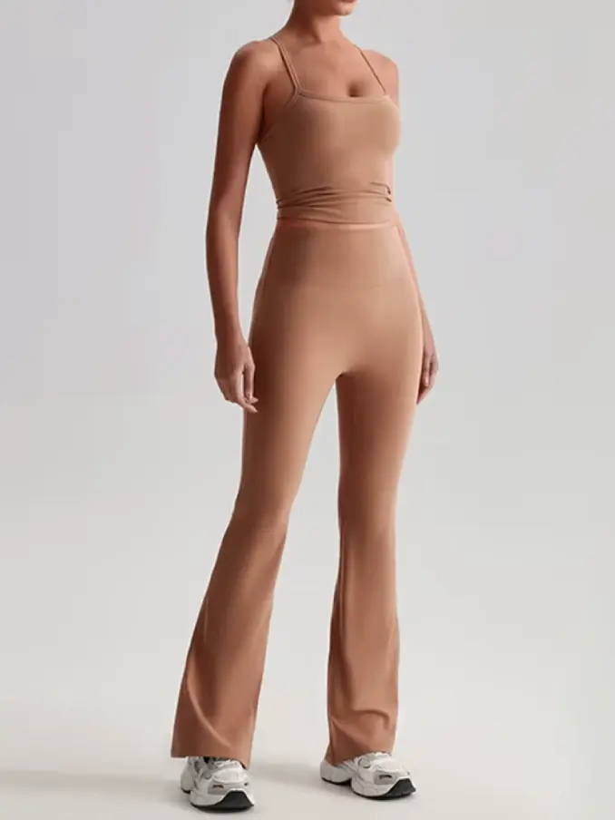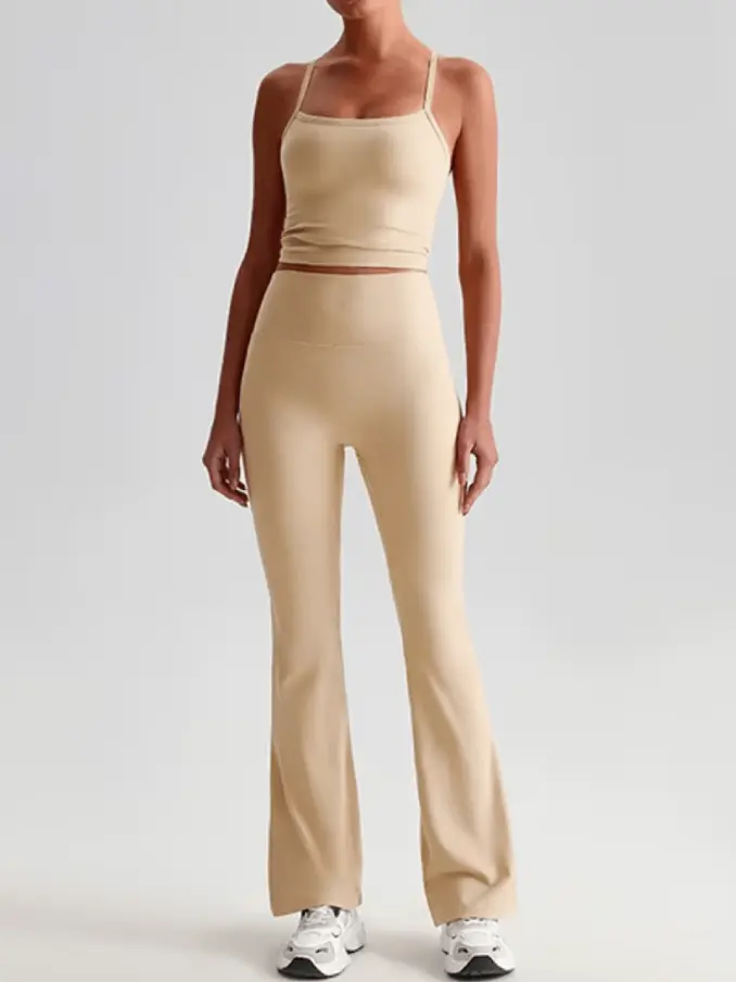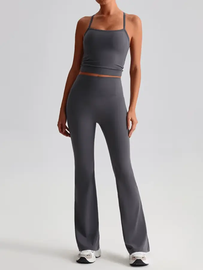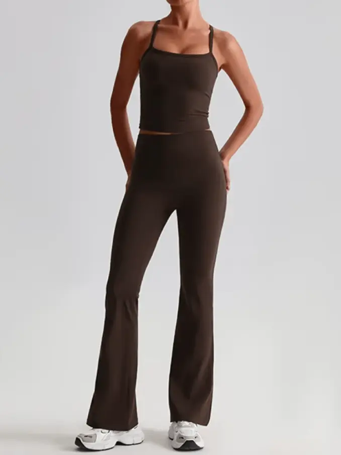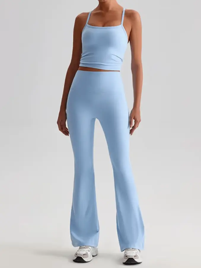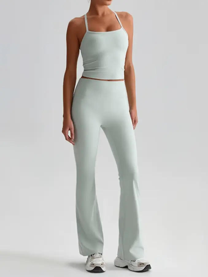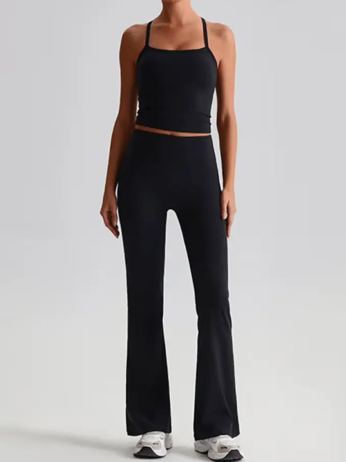 Workout Sets for Women 2 Piece Sleeveless Y Back Crop Tops High Waist Flared Leggings Casual Yoga Gym Sets