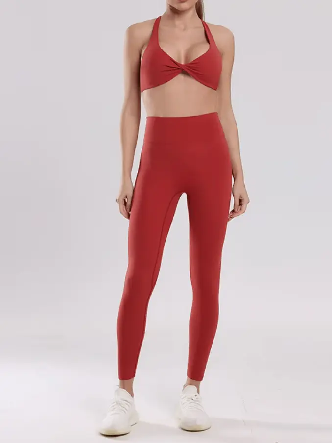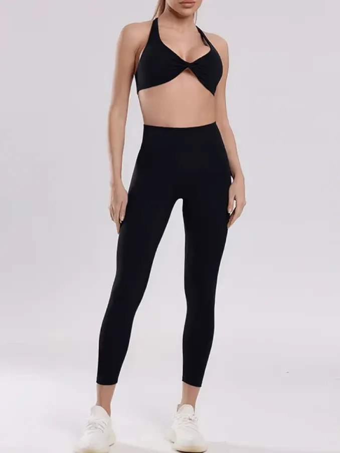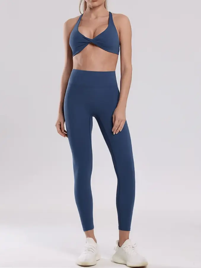 Sexy Yoga Set Two-piece Cross Straps Beautiful Back Sports Bra Tight Hip-lifting High Waist Long Women's Peach Hip Pants