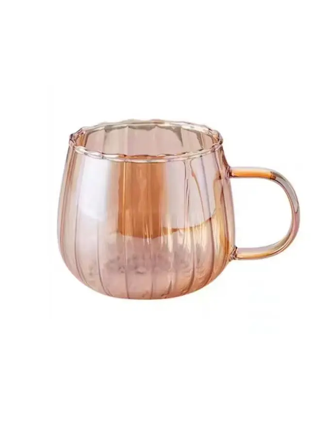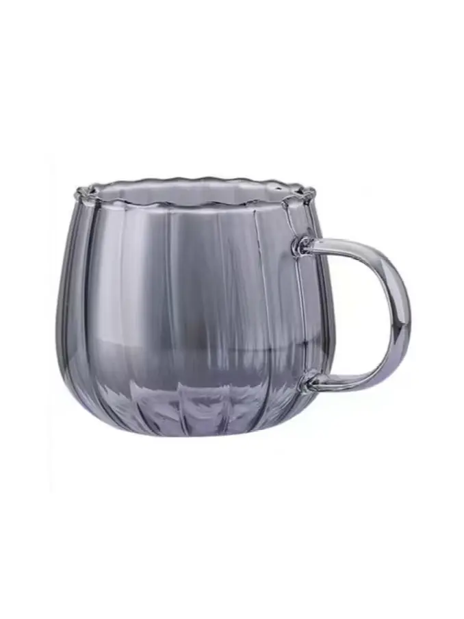 High-Brow Vertical Striped Design Coffee Milk Glass Cup Thickened Heat-Resistant Drinkware for Home Office Use
