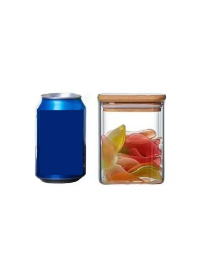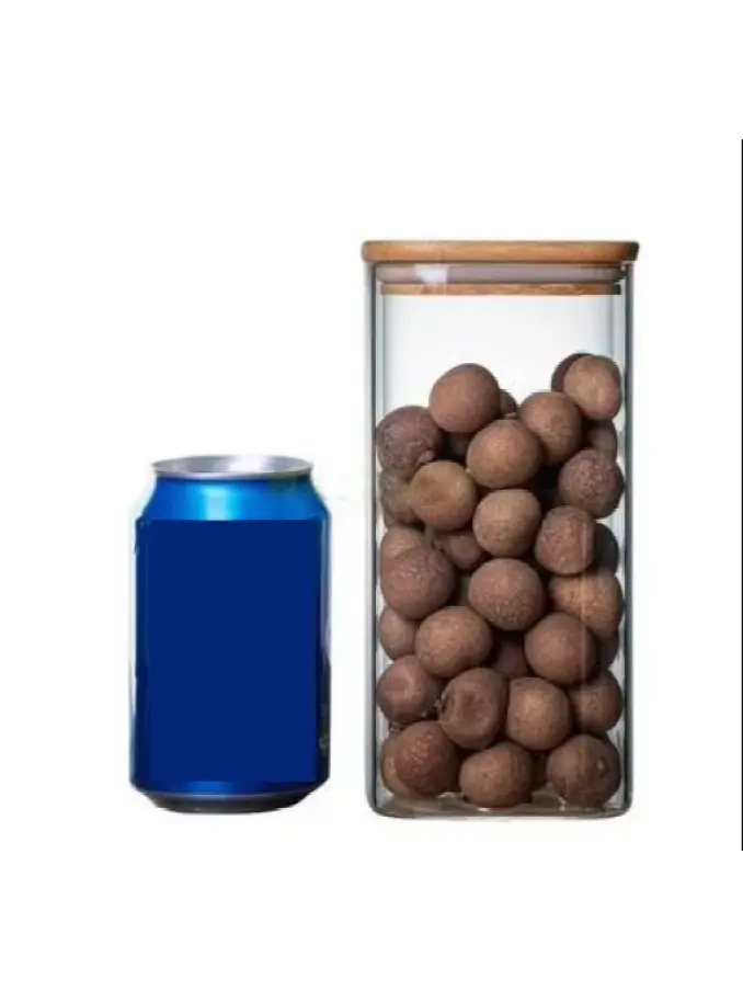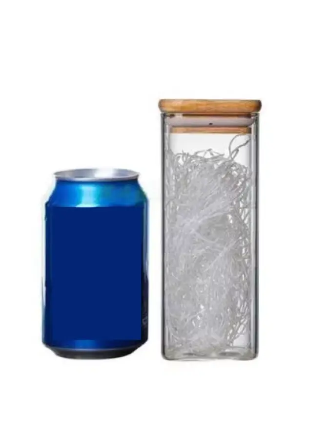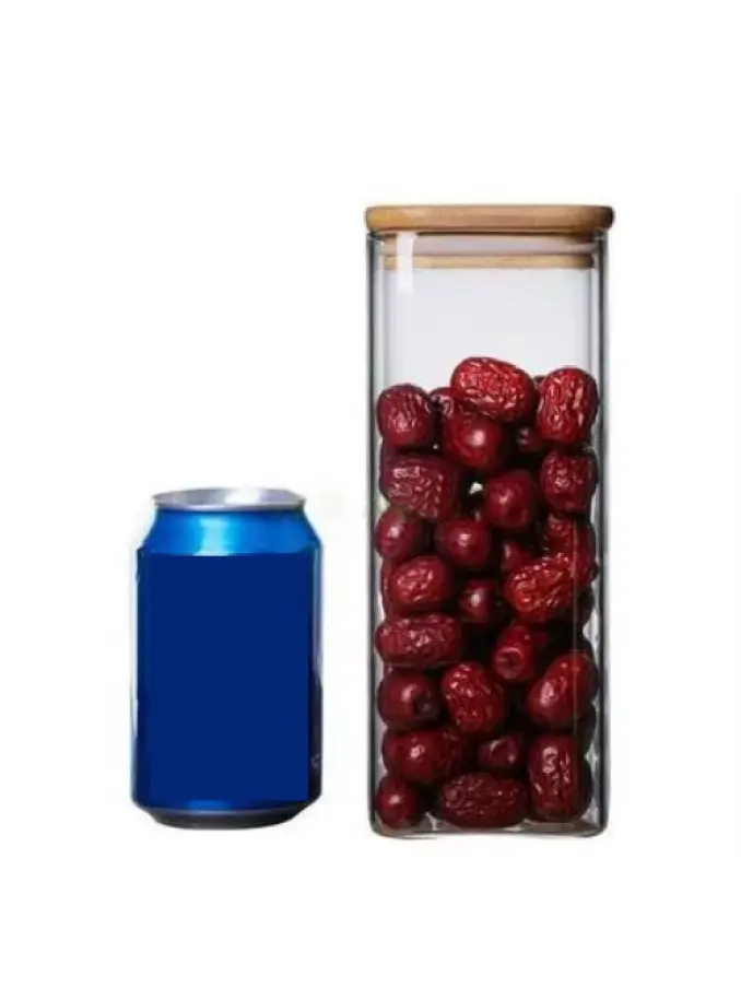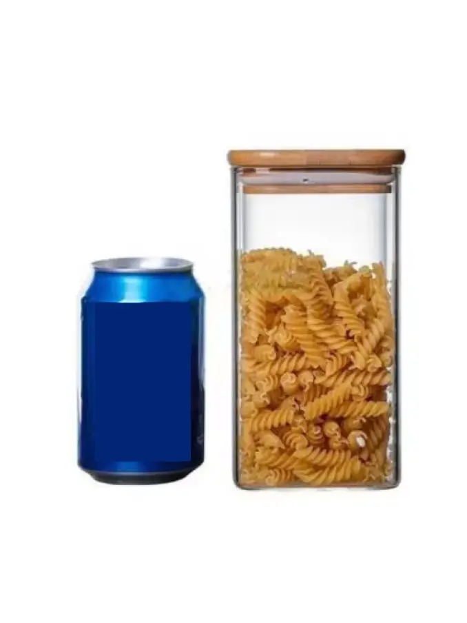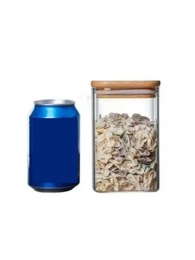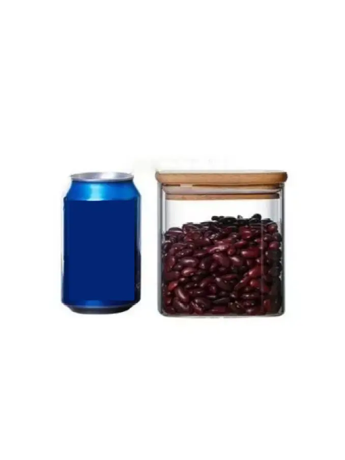 High Borosilicate Square Glass Storage Jar Kitchen Food Sealed Bottle with Bamboo Lid for Travel Condiments Storage