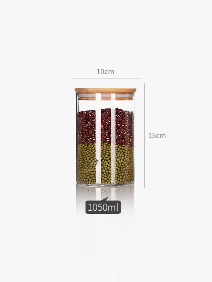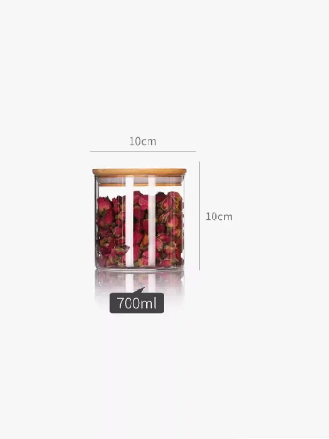 Transparent High Borosilicate Glass Storage tank Household Kitchen sealed Storage Jar sealed Bottle with Bamboo Lid Silicon Ring