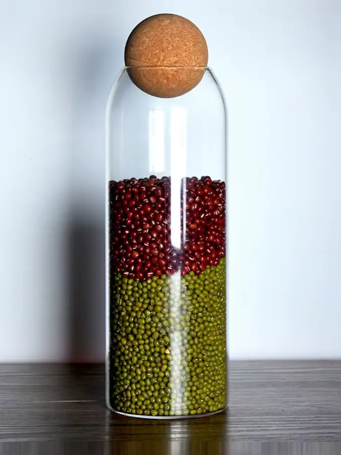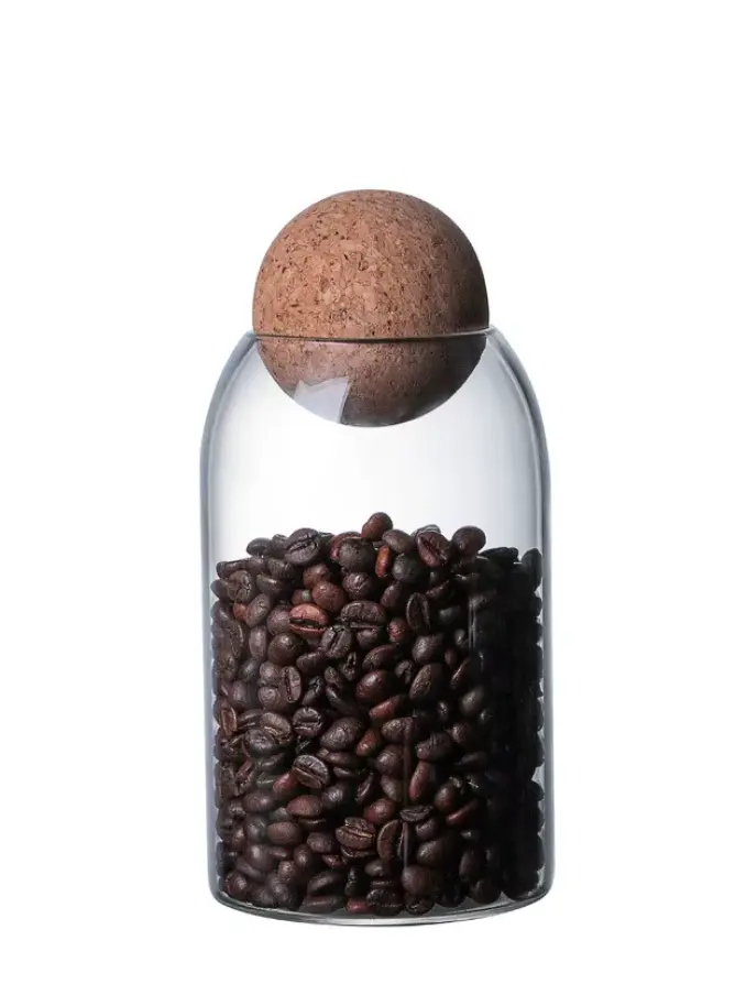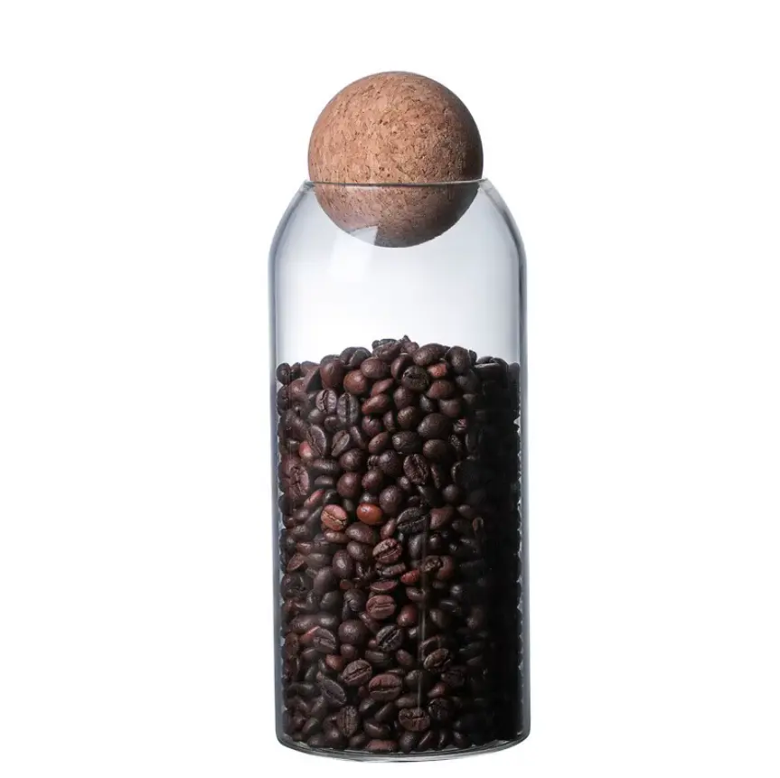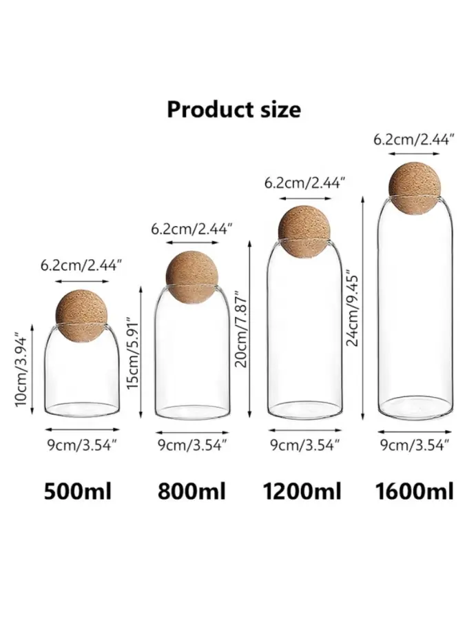 Borosilicate Glass Canister Jars with Wood Lid and Cork for Ball Stopper Stylish Cover for Food & Condiments Storage