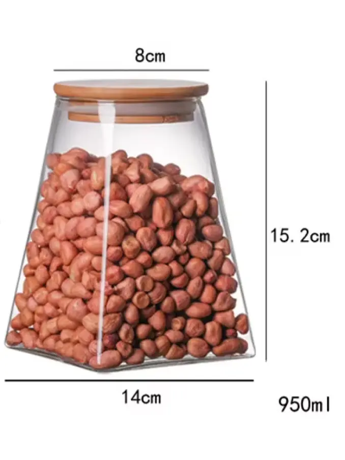 High Borosilicate Environmental square Glass sealed Cookie Container & jar with Bamboo Lid