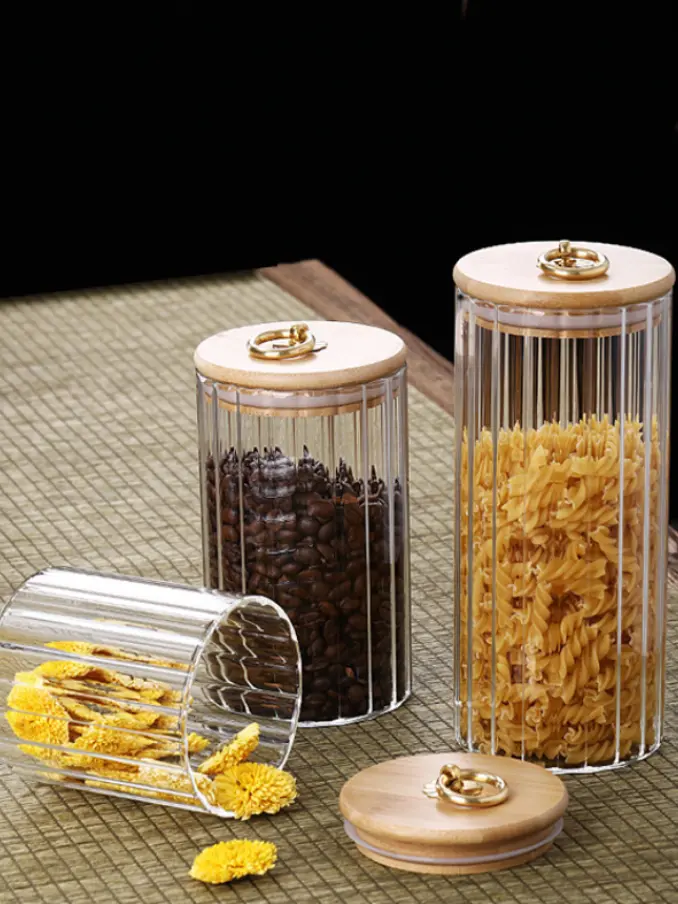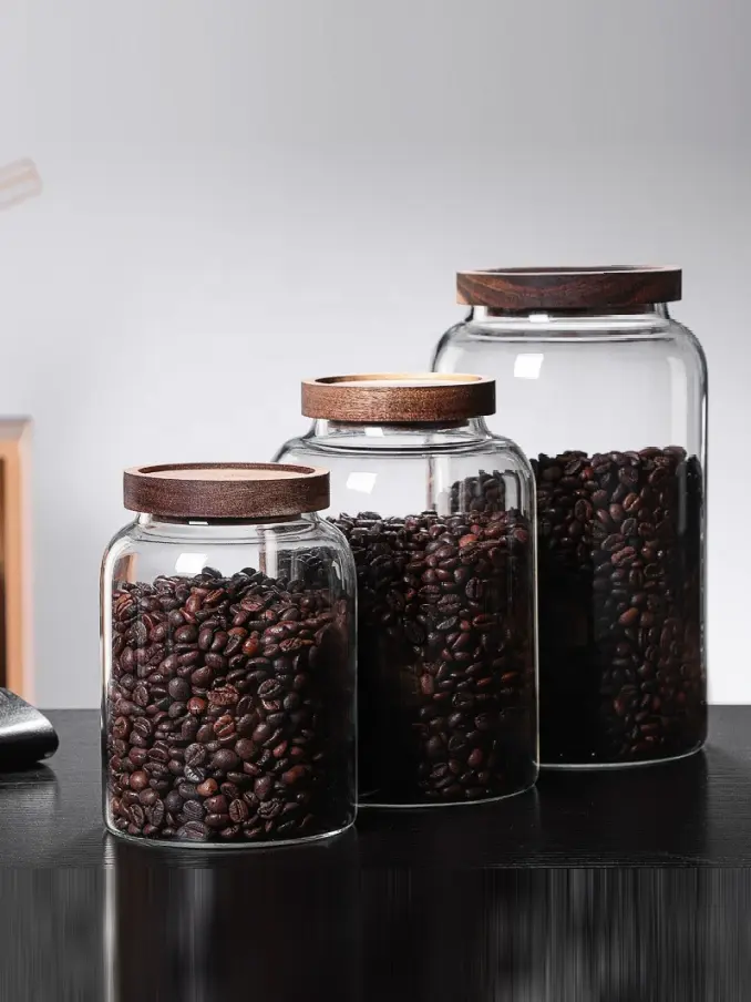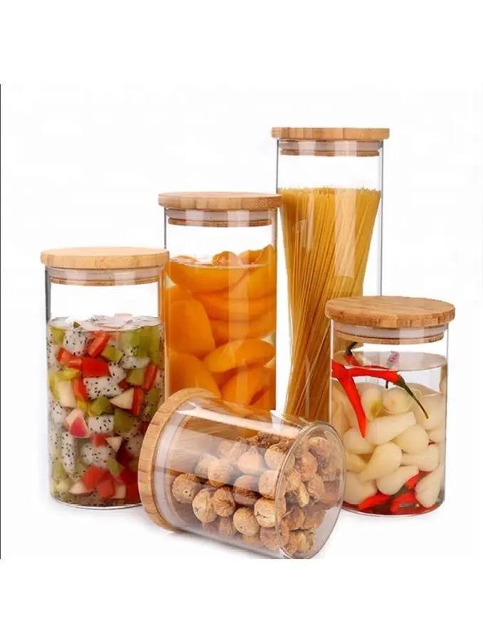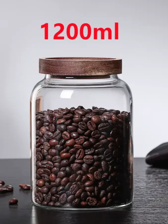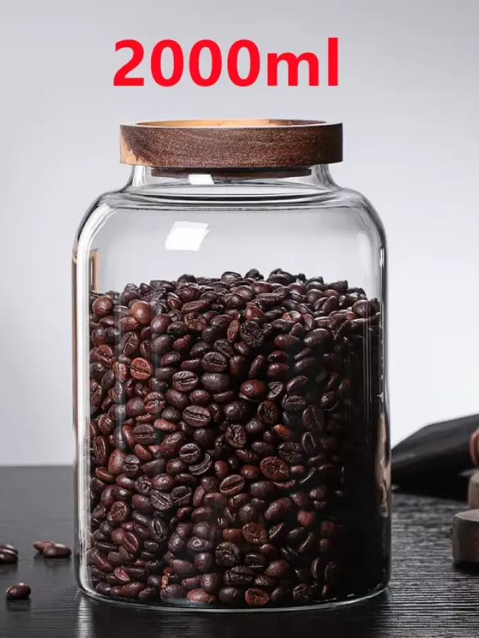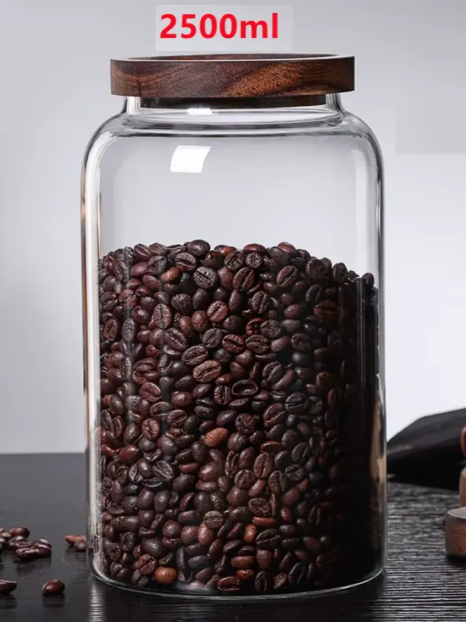 Big Size 1200/2000/2500ML Borosilicate Glass Jar with Acacia Lid Sealed Storage Cover for Condiments