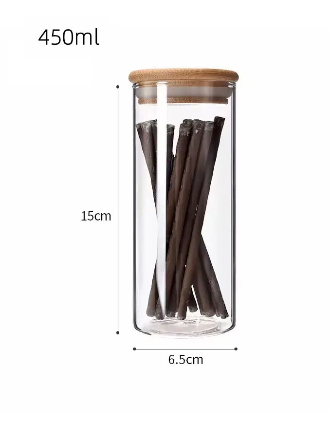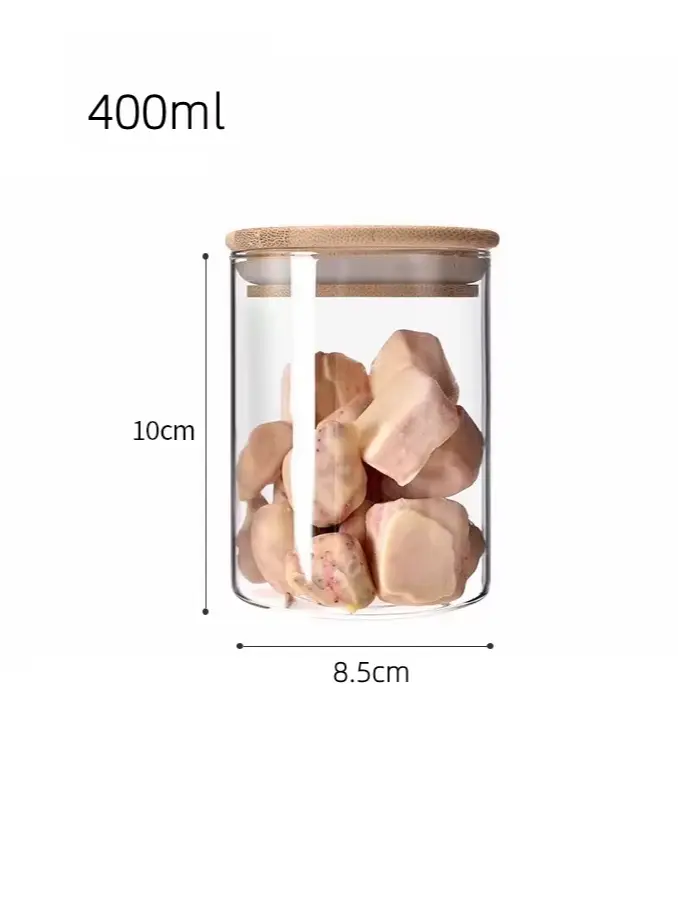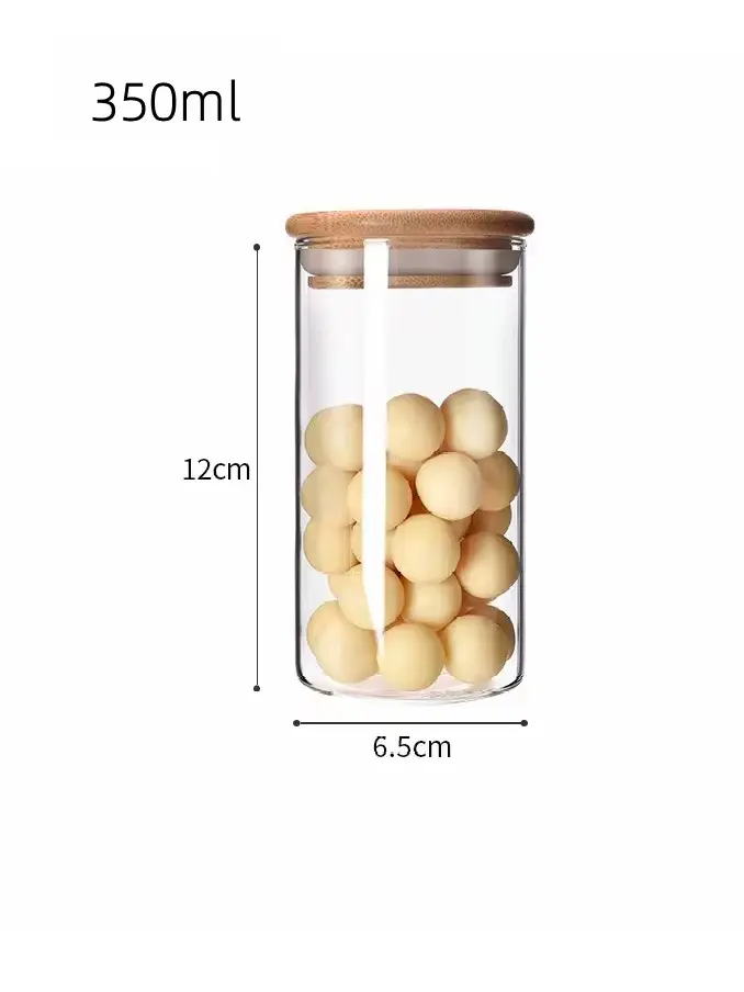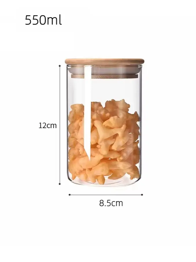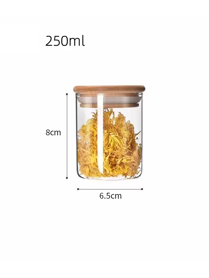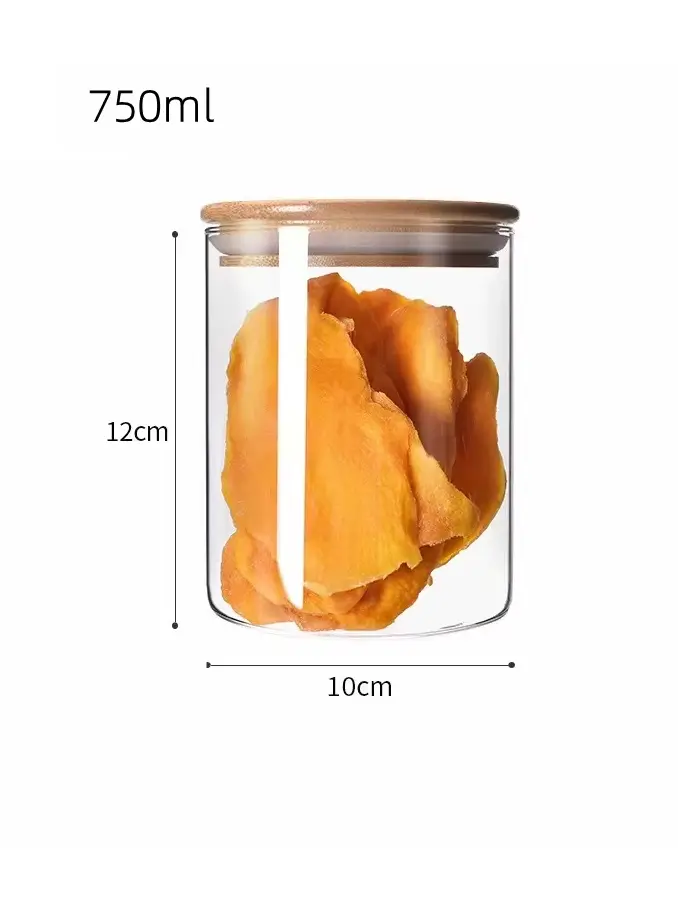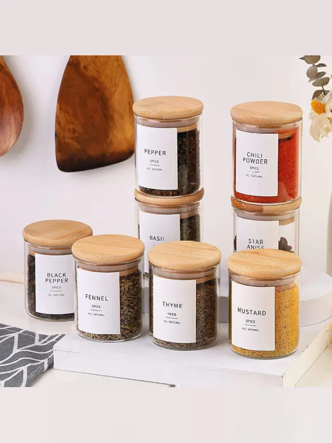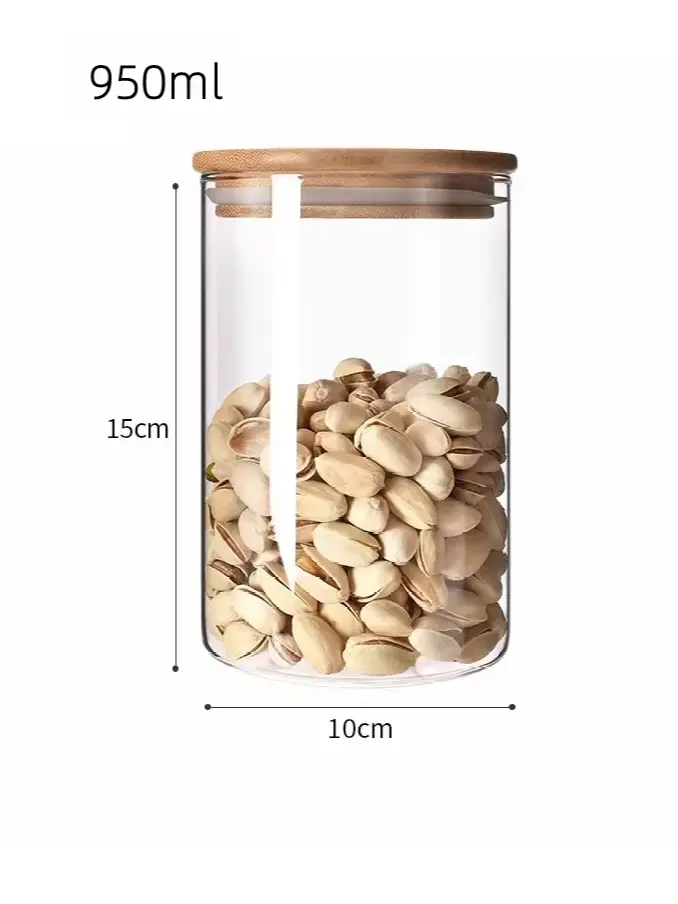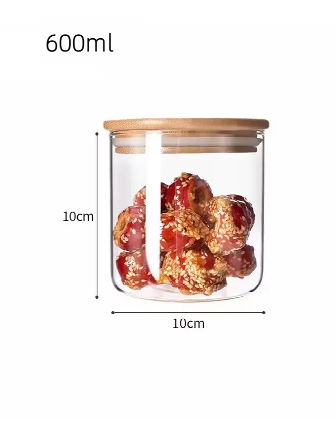 Borosilicate Bamboo Glass Canister with Bamboo Lid, Microwavable Spice Kitchen Food Storage Jar and Containers