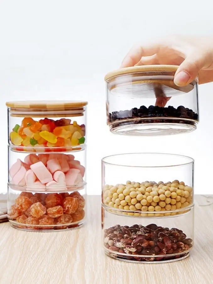 High Borosilicate Glass Airtight Storage Container with Bamboo Lid Clamp for Kitchen Food Preservation and Camping