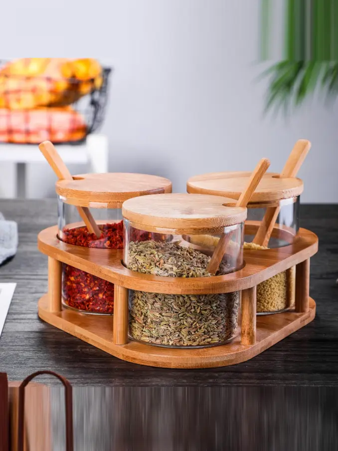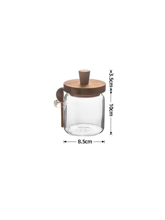 High Borosilicate Glass Seasoning Jar with Wooden Lid Classic Style Moisture-Proof Kitchen Storage Cover Condiments Container