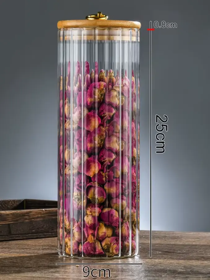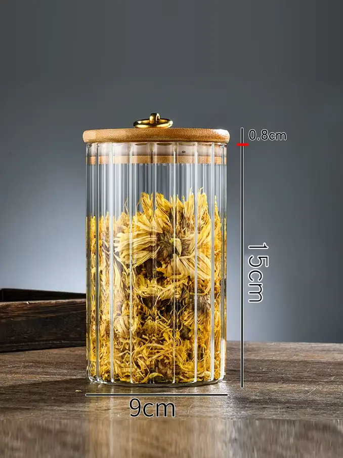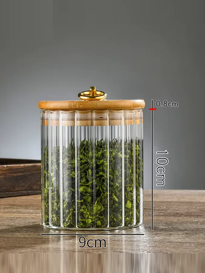 Striped Glass Storage Jar with Wooden Lid for Snacks Candies Food Kitchen Use Direct Manufacturer
