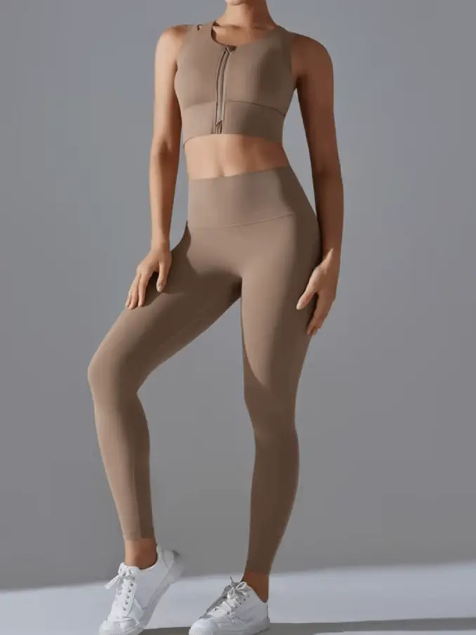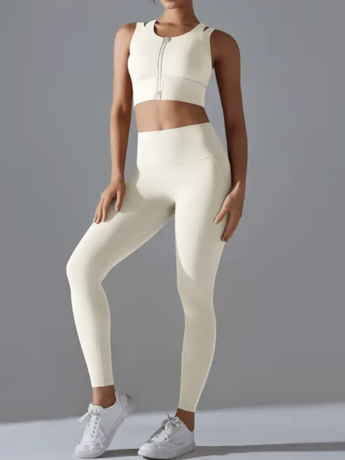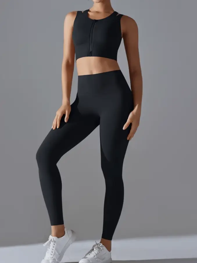 Workout Sets for Women 2 Piece High Waisted Leggings With Padded Stretchy Sports Middle Zipper Tank Top Sets Gym Clothes