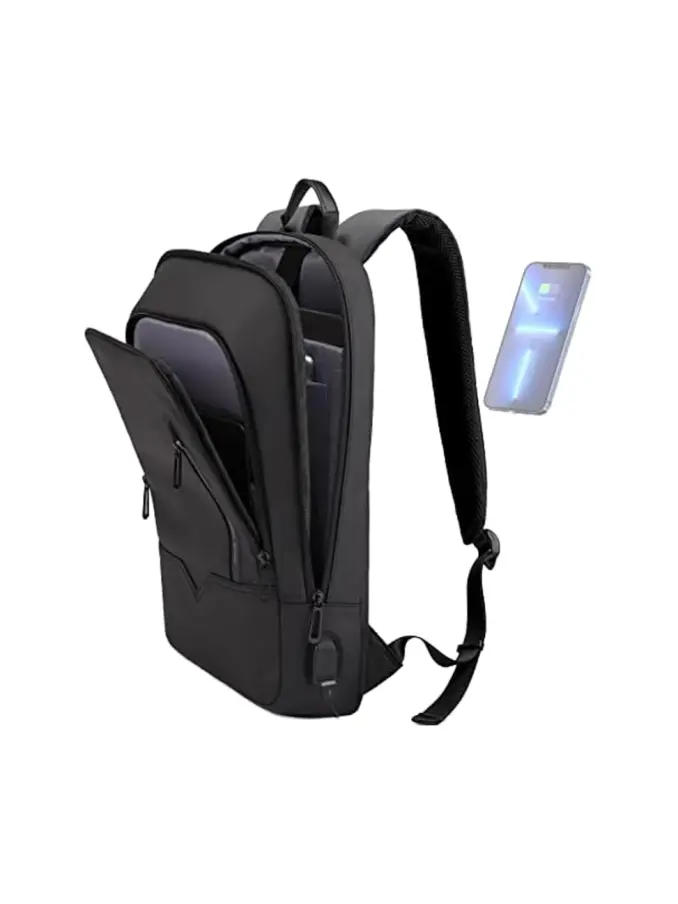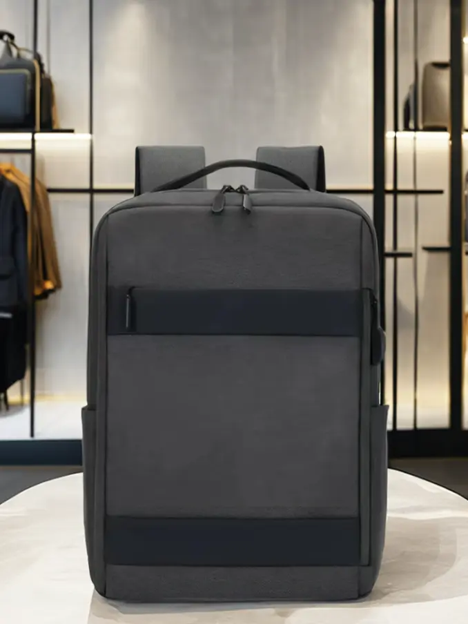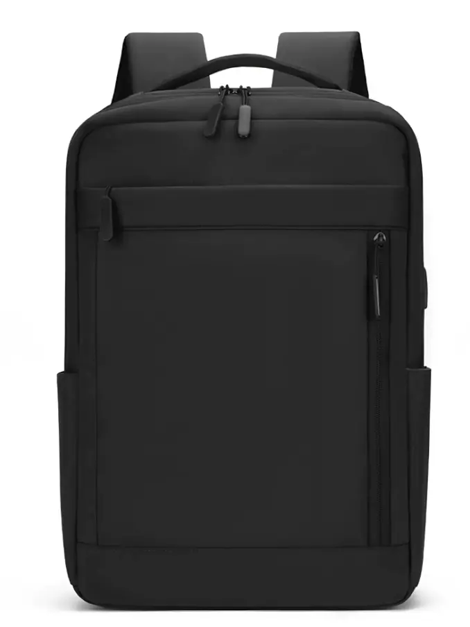 Unisex Lightweight Oxford Computer Backpack Large Black Durable Waterproof USB Port Fashionable Letter Pattern Zipper Business