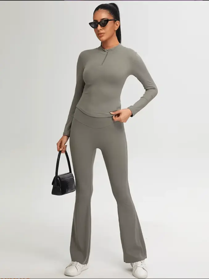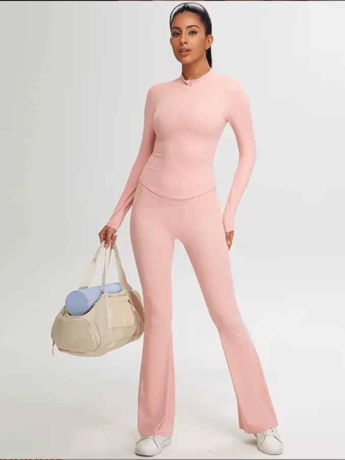 Long Sleeves Half Zipper Tops Outdoor Outfits Breathable Leggings Sets Women Size Tights for Fitness Workout Sets for Women