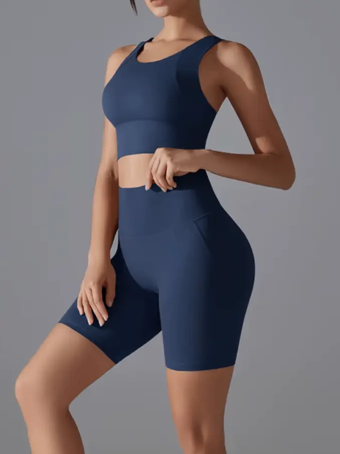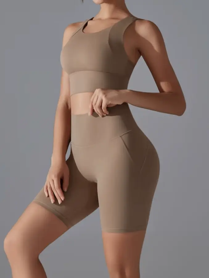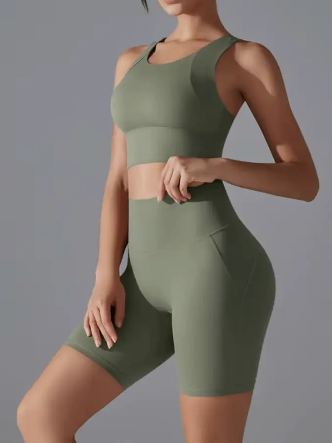 Workout Sets for Women 2 Piece Outfits High Waisted Yoga Shorts Fixed Cup Racer Back Sports Bra Gym Sets