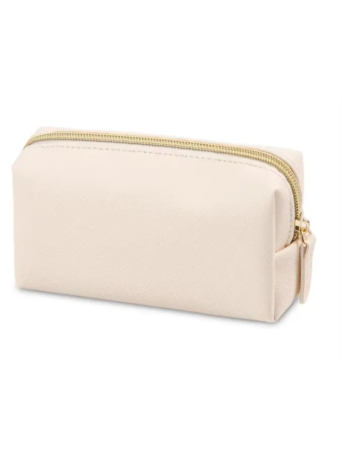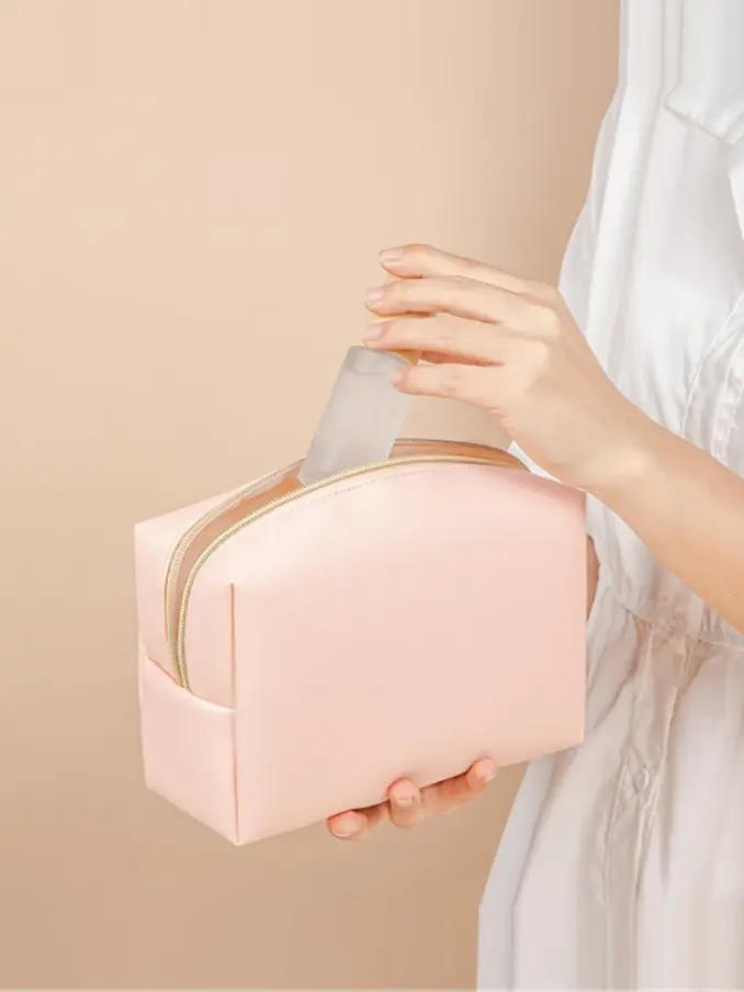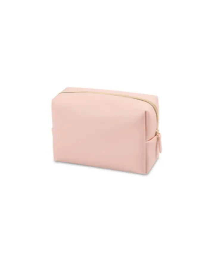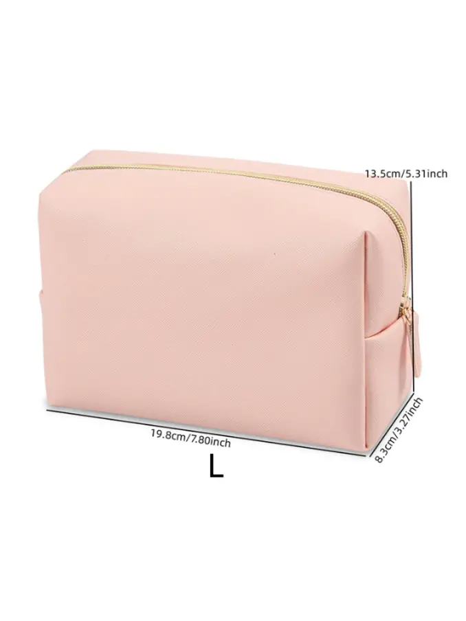 Women's Large Zipper for Toiletry Storage Bag, Makeup Bag, Made of PU Leather Solid-Color Travel Cosmetic Case