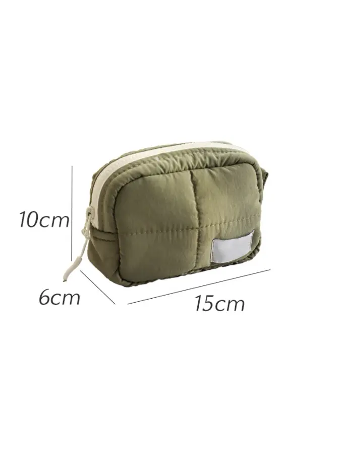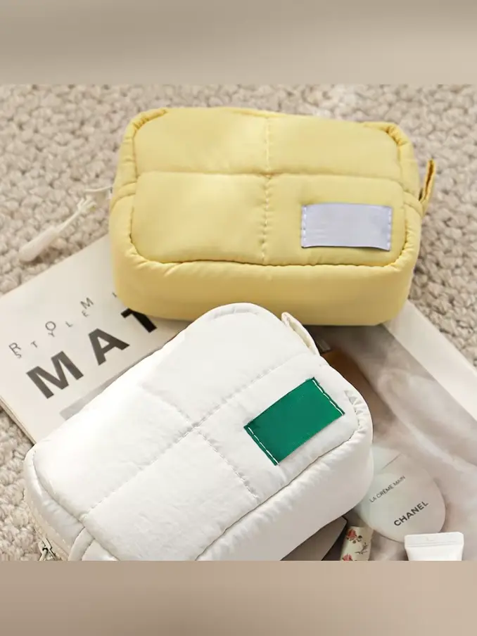 Women's Eco-Friendly Quilted Makeup Bag Durable and Soft Beauty Puff Case with Zipper Closure Waterproof and Eco-Friendly