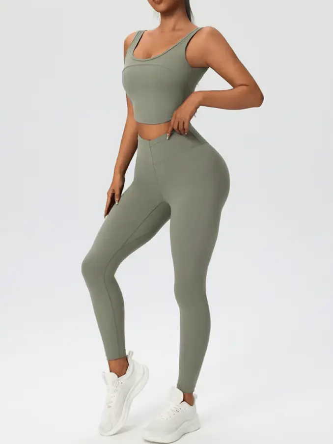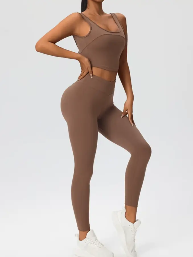 Women's Yoga Outfits 2 Piece Set Workout Tracksuits Sports U Neck Bra High Waist Legging Active Wear Athletic Clothing Set
