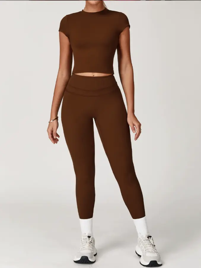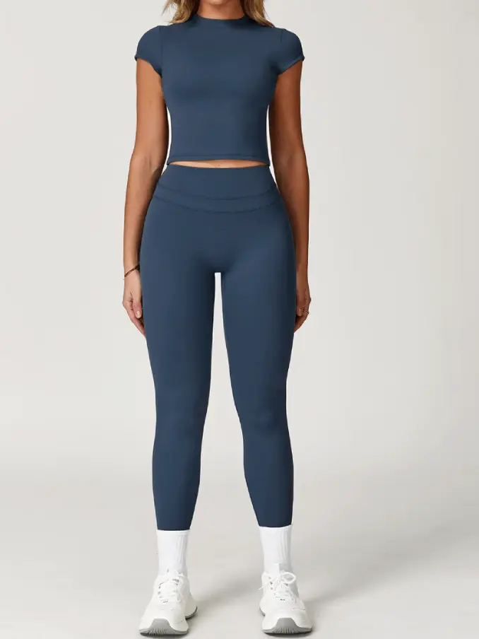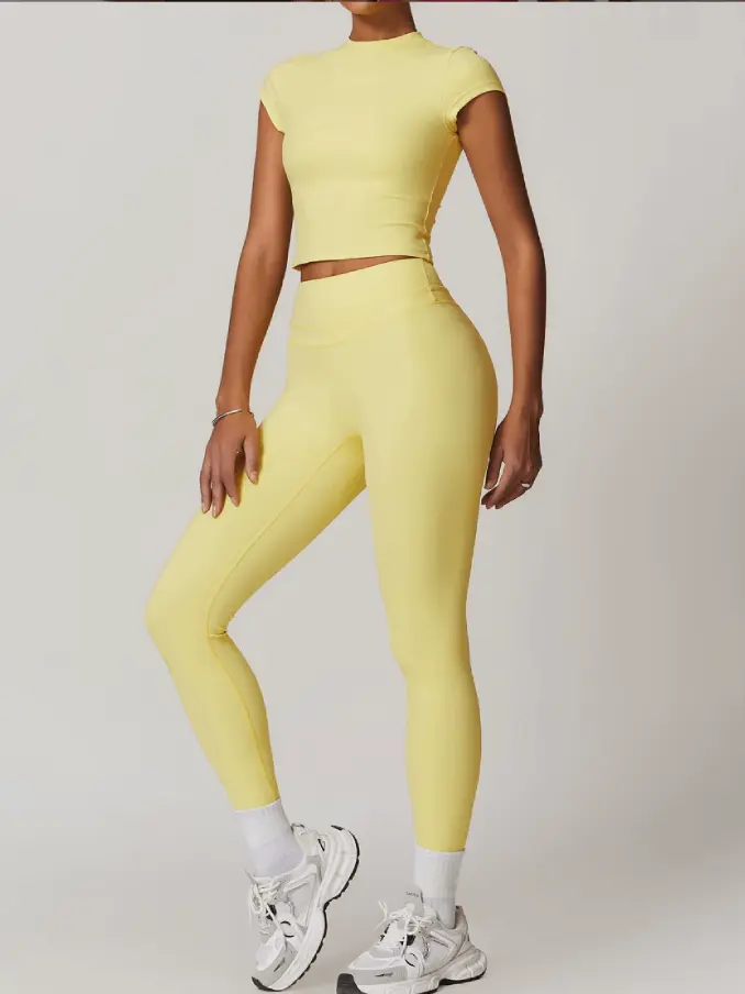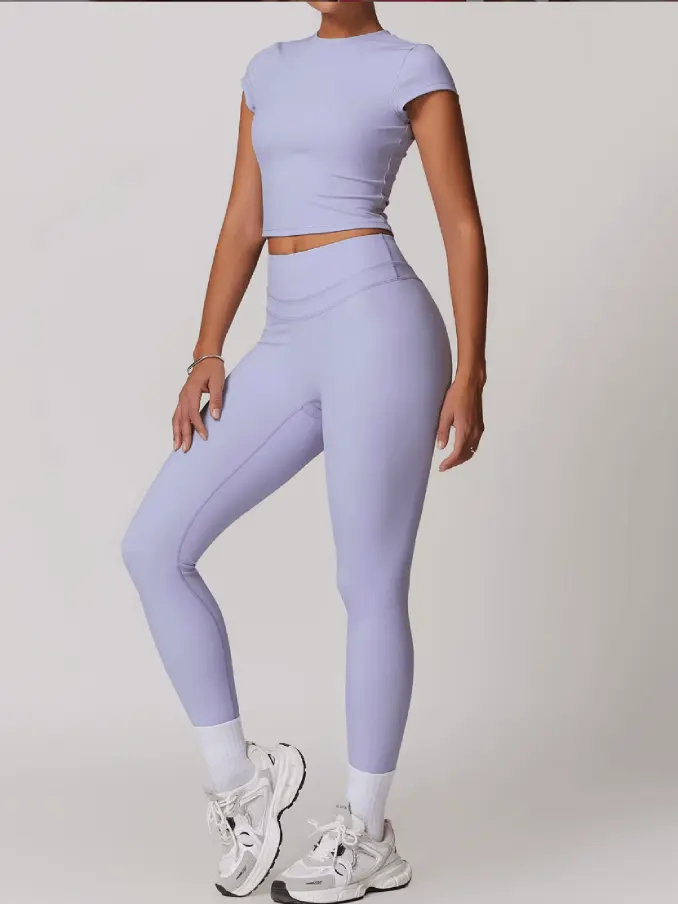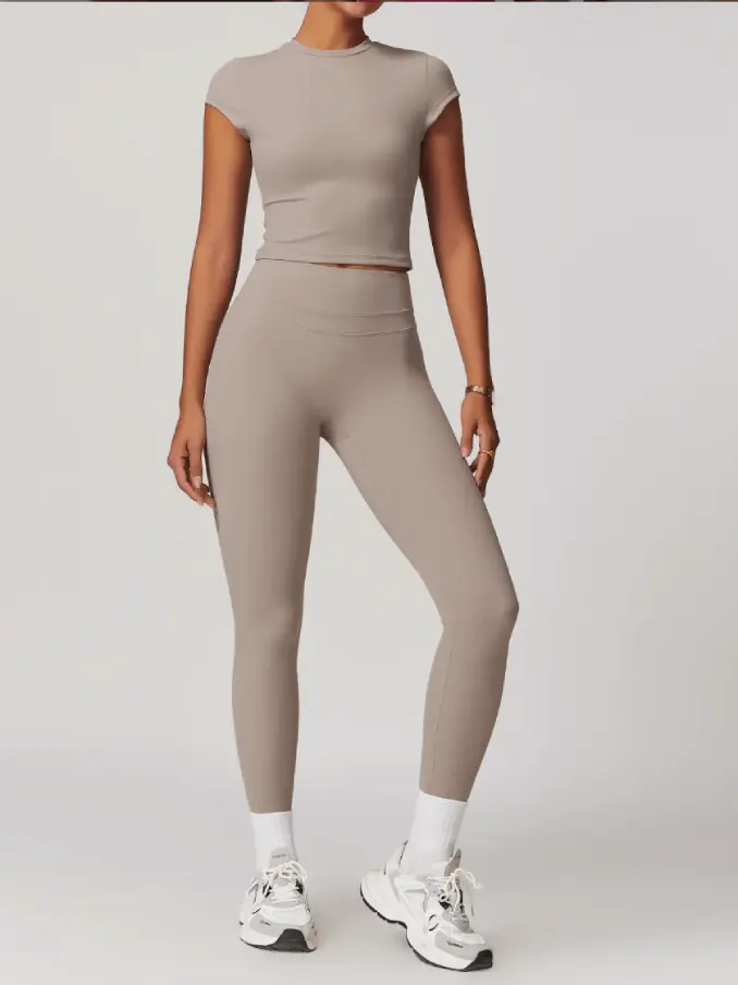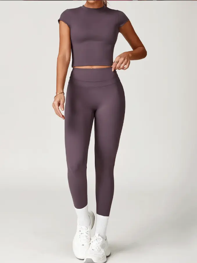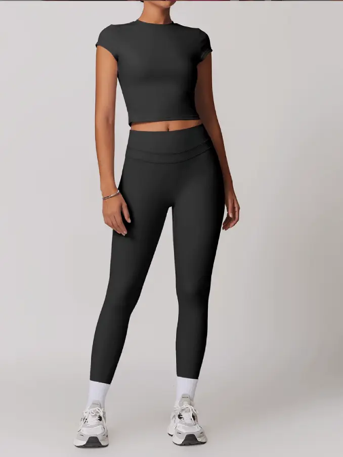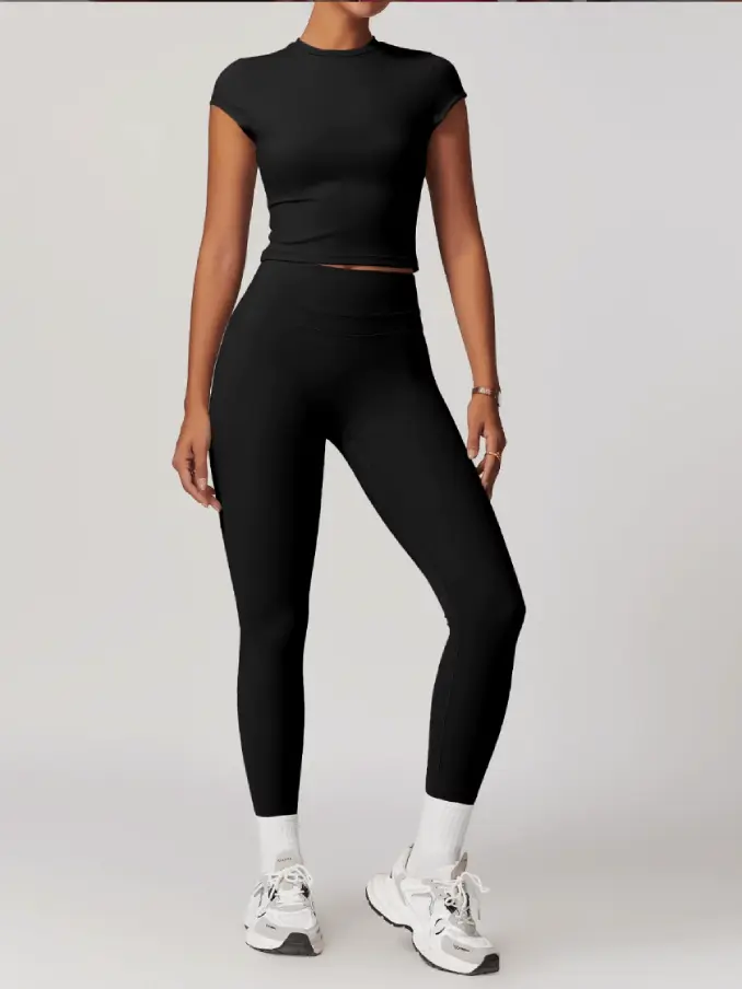 Short Sleeves Gym Fitness Sets High Waist Leggings Sets for Women Breathable Active Wear Sets for Women