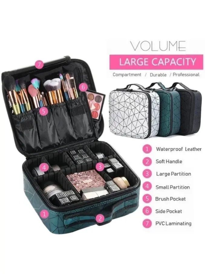 Large Capacity Portable Cosmetic Bag with Hanging Feature Shockproof Multi-Layer Partition Storage Case