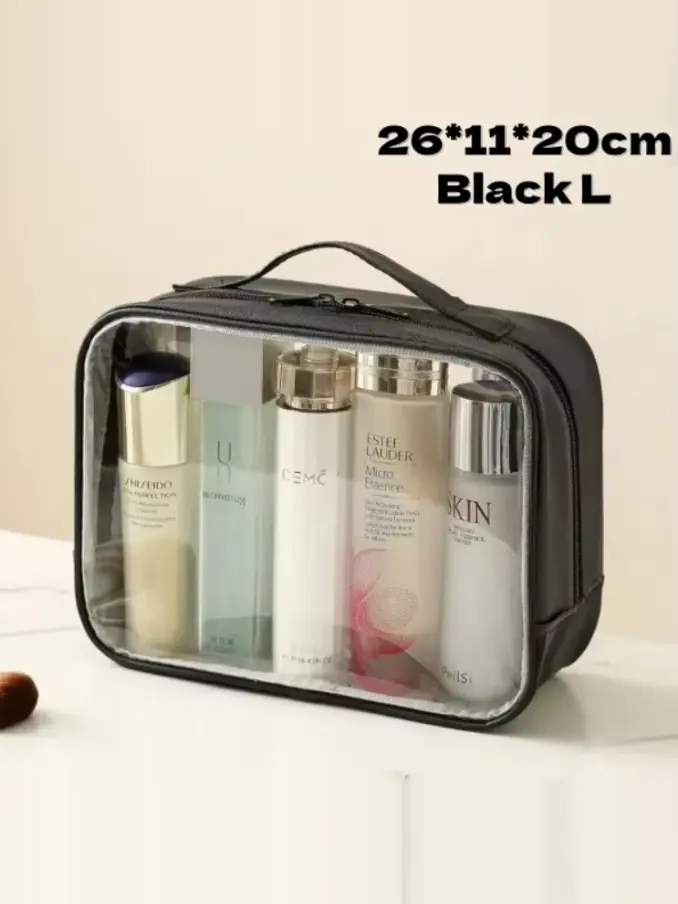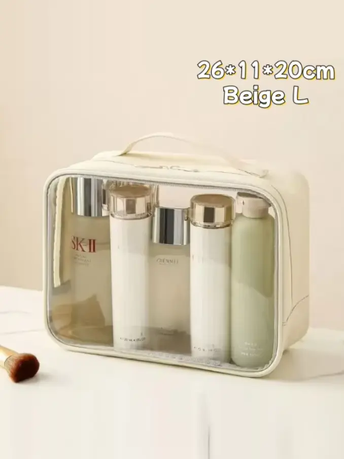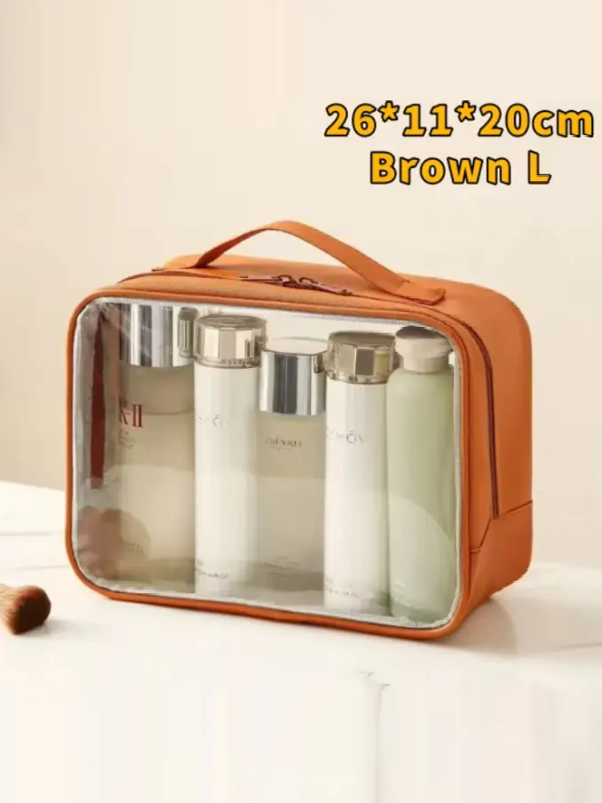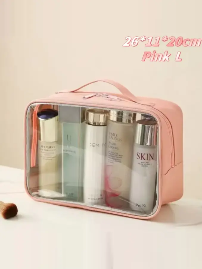 Portable Double Transparent PU&PVC Makeup Bag Zipper Dry-Wet Separation Case Travel Fitness Swimming-Cosmetic Storage Essentials
