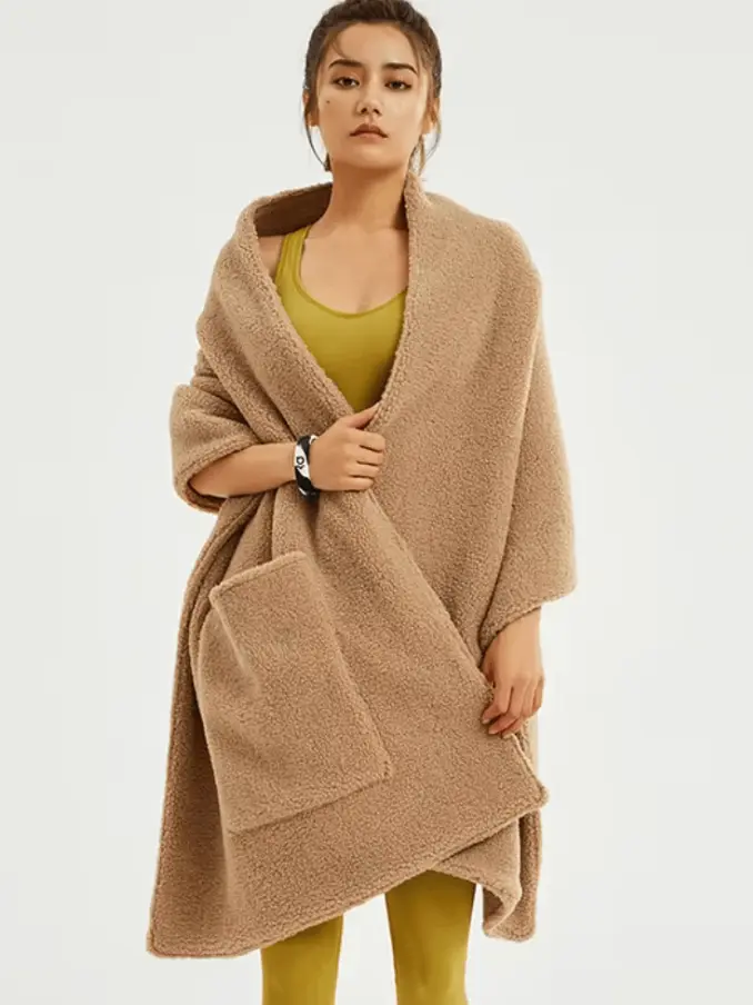 Over Size With Pockets Fleece Workout Scarfs Thickness Warm Women Tippet Winter Scarf for Women